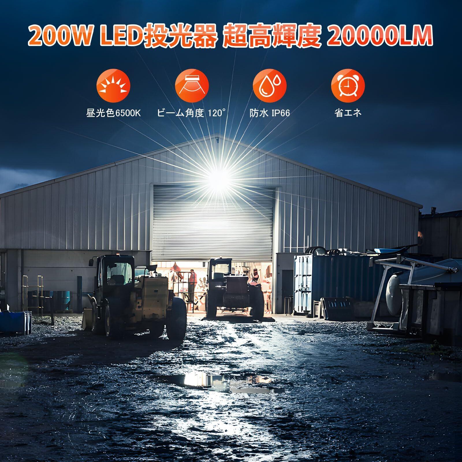 【高輝度・省エネ】:MEIKEEのLED投光器は広面積・高光効なSMDチップを実装することで、200Wで全光束10000LMに達します、驚くさの明るさを実現しました!抜群の省電力化が可能低電力で使い勝手が良くそこそこ明るいのが良いところです。200Wの光源、6500K、20000lm、今までの投光器に比べて取り扱いにも良く消費電力の割には十分明るいです。