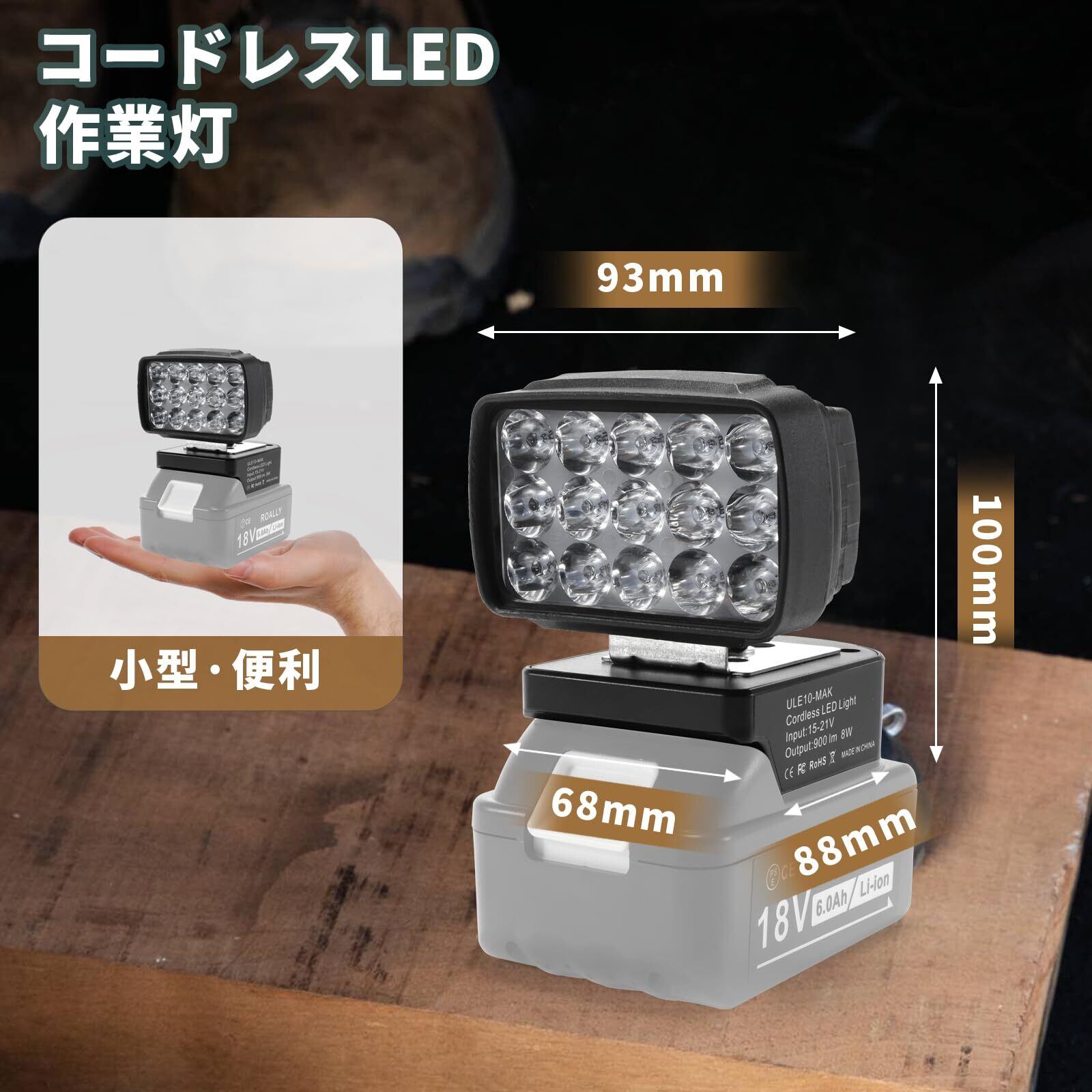 KINGTIANLE ワークライト 3800LM 作業灯コードレス LED作業灯 投光ライト 高輝度 小型 工事現場/非常用照明/屋外作業/キャンプ/登山/夜釣り/防災/停電に最適 マキタ18V バッテリー用 【本体のみ/バッテリーなし】