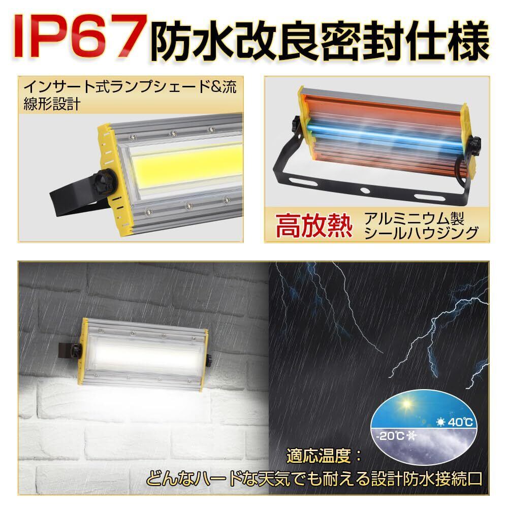 【角度調整可能&高輝度】:LED投光器は高品質COBLED高照度の新ランプ膜が搭載し、6000k昼白色、最高輝度は8000lmに達し、3mコード、電圧は80V-150Vに適しています。ライトのアルミニウム合金ブラケットは360度設置でき、0度から360度回転でき、発光角度は240度で、隙のない照明を実現し、どんな場合にも活躍できます。