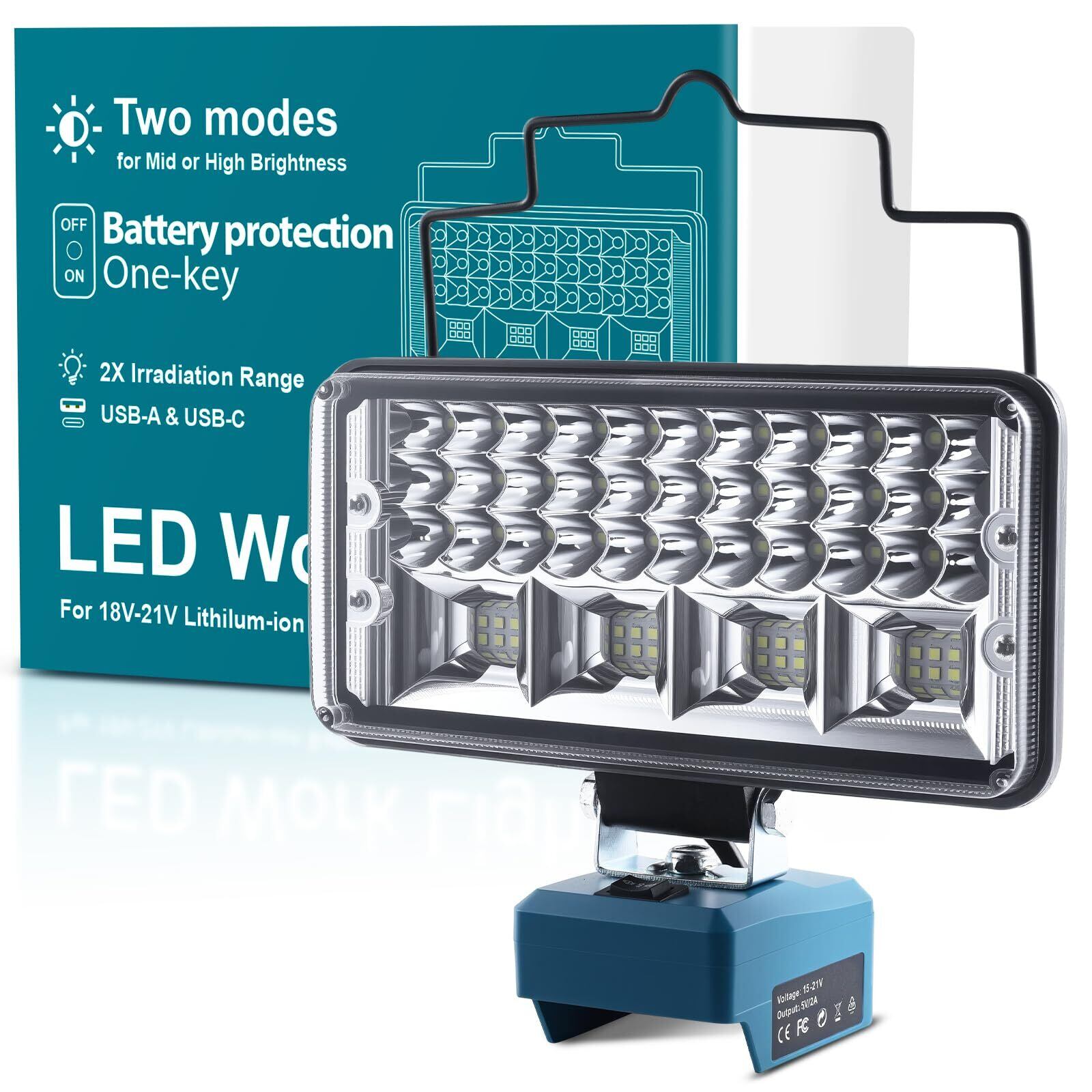 LED 投光器 対応 マキータ 18Vパッテリ用 ワ-クライト90W 8000LM 充電式 作業灯 IP65防水防塵 防漏電&低電圧保護スイッチ USB/Type-C充電ポ-ト搭載 ポ一タプルワ-クライト 建設現場 緊急照明 屋外作業 キャンプ ハイキング 夜釣り 停電などに対応 (電池なし)