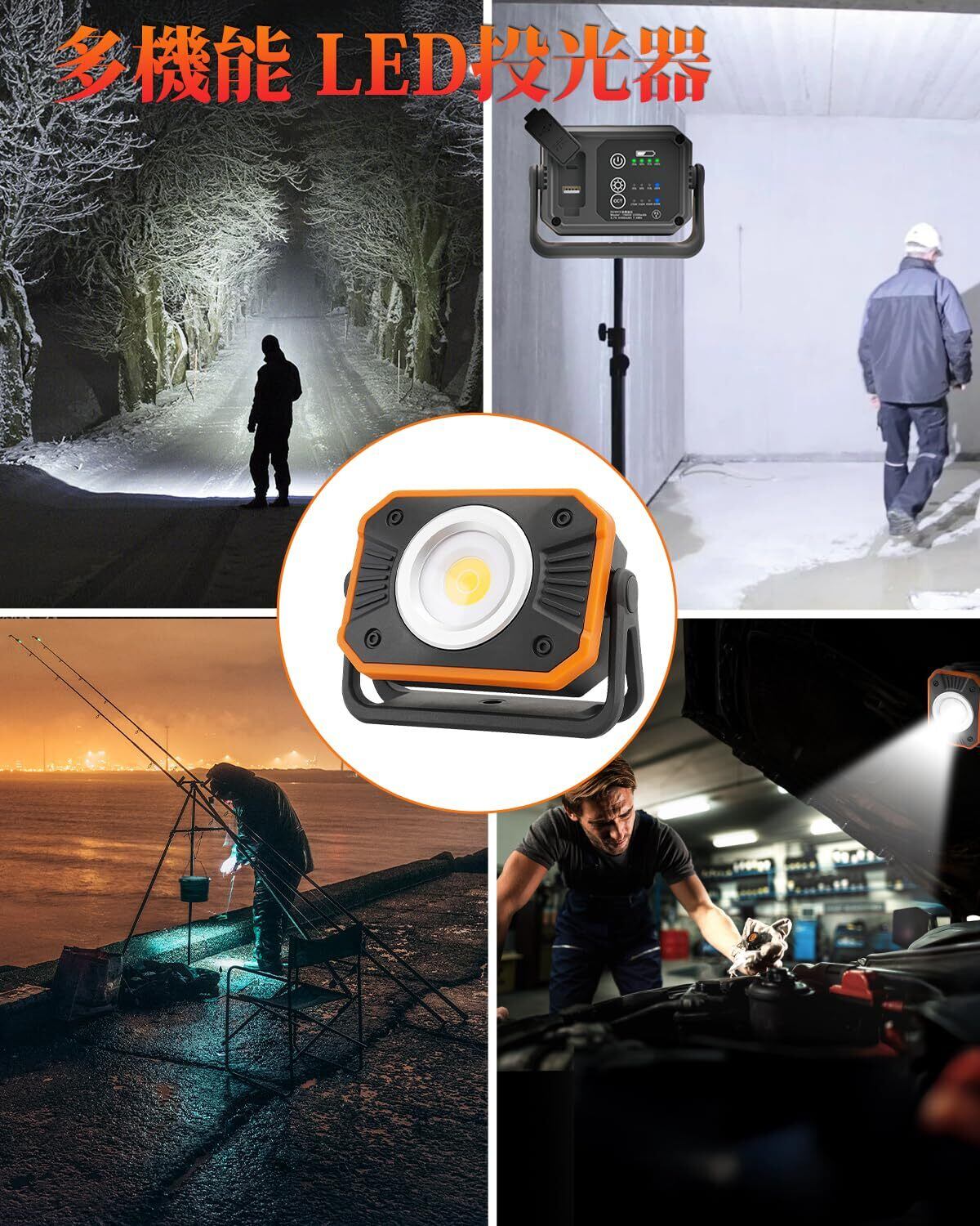 【IP66防水防塵&強耐久性&小型軽量】本LED作業灯はIP66防水防塵性能を備え、雨や埃から内部をしっかり守るため、屋外での使用も安心です!本体はナイロン+TPR素材を使用し、衝撃にも強く、万が一の落下にも耐える設計。重量はわずか326g、コンパクトで軽量なデザイン。持ち運びや収納が非常に便利で、投光器を取り出しやすく、キャンプ/登山/メンテナンス/アウトドア用に最適です。それだけではなく、非常用ライトとして緊急/停電/災害の時にも適用ます。