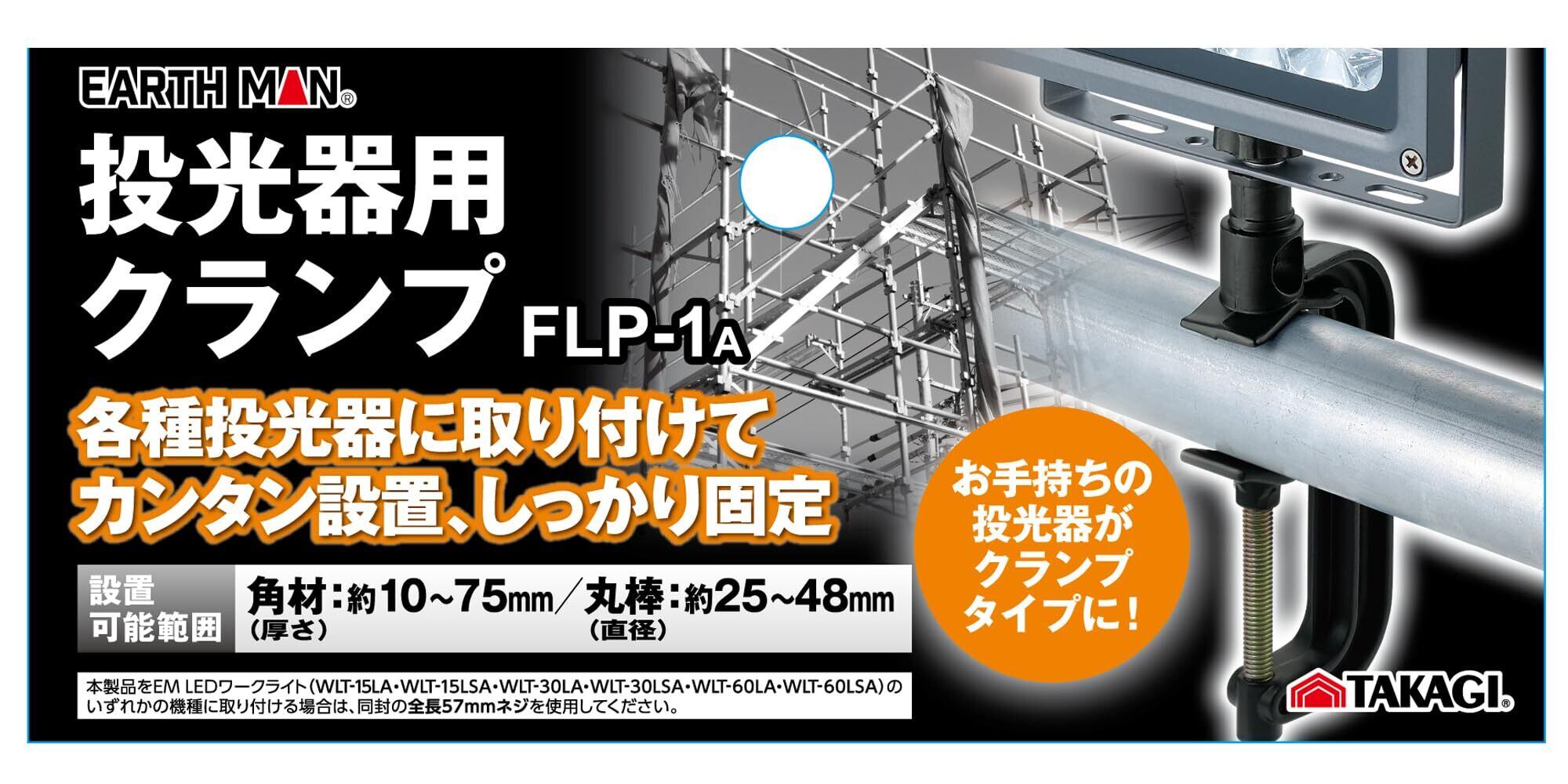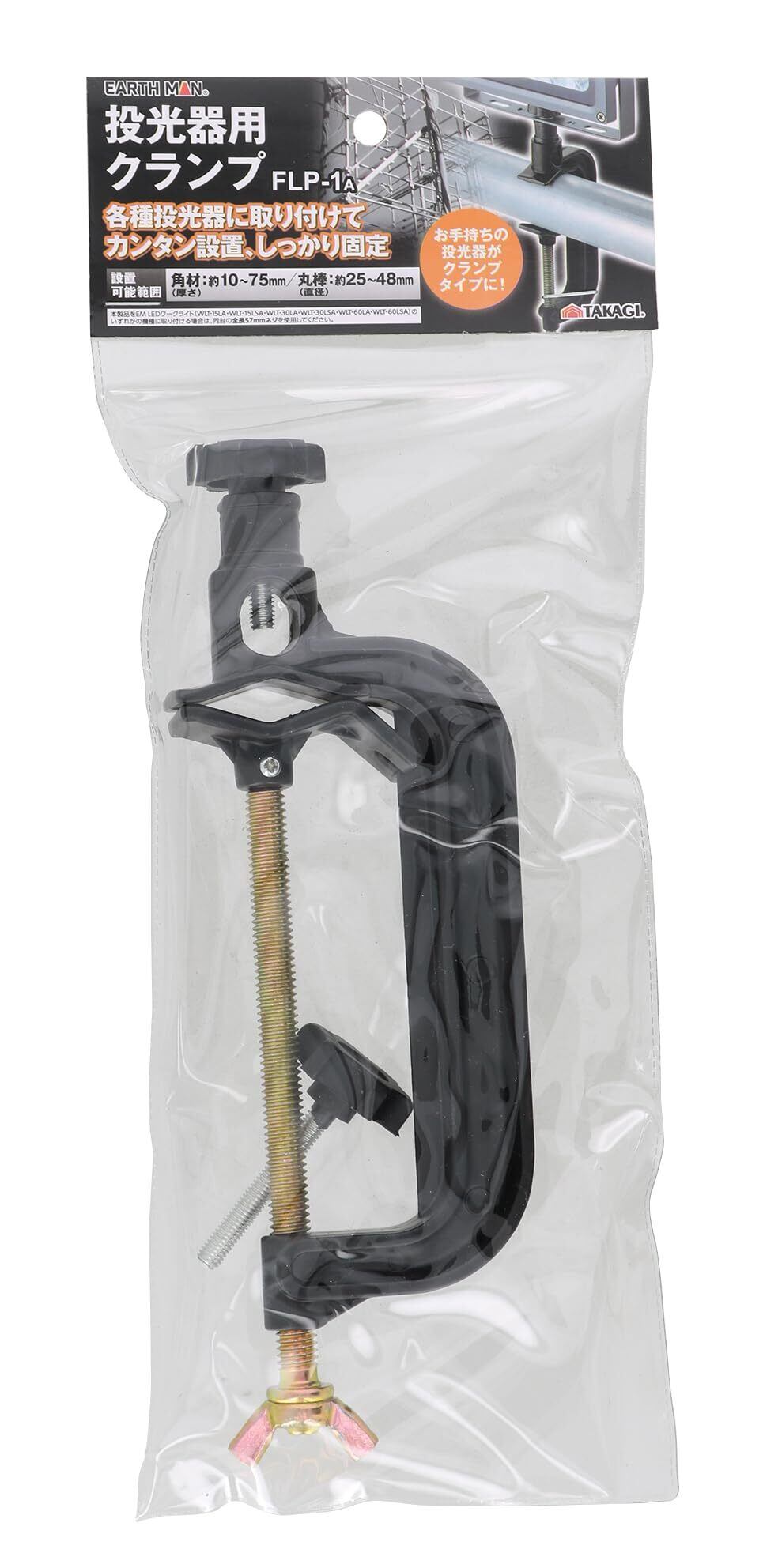 【在庫限り】髙儀(Takagi) EARTH MAN 投光器用クランプ FLP-1A ブラック 全長230mm 口開き幅100mm