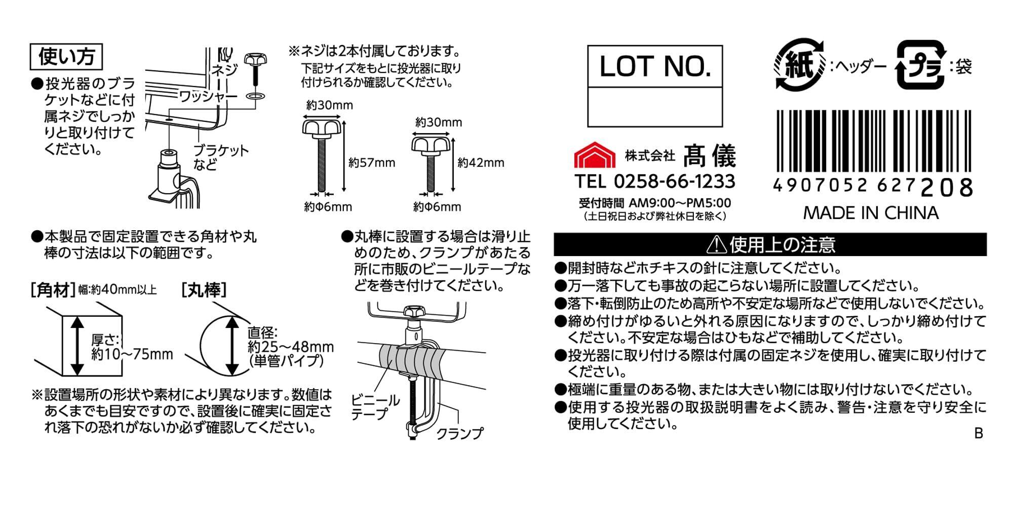 各種投光器に取り付けてカンタン設置、しっかり固定