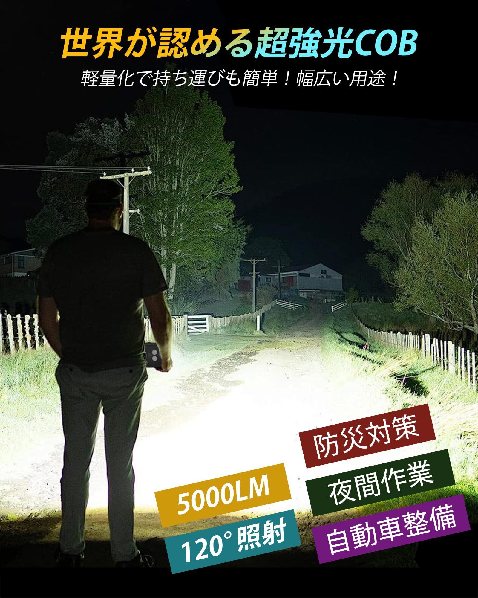 【特別価格】投光器 LED 充電式 作業灯【12000mAh大容量・超高輝度5000ルーメン】連続点灯168時間 無段階調光 4つ点灯モード led作業用ライト 防水 ワークライト 小型 強力マグネット モバイルバッテリー機能 屋外 アウトドア用 夜釣り 夜間工事 車の修理 夜間練習 野外照明 防災 地震 緊急 停電 非常用 PSE認証済み