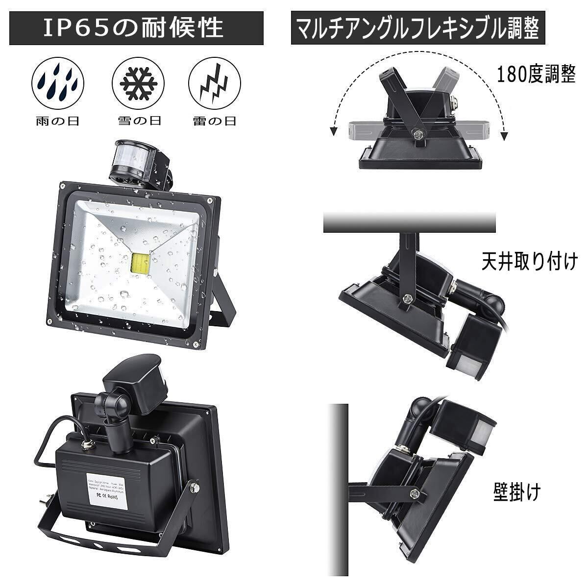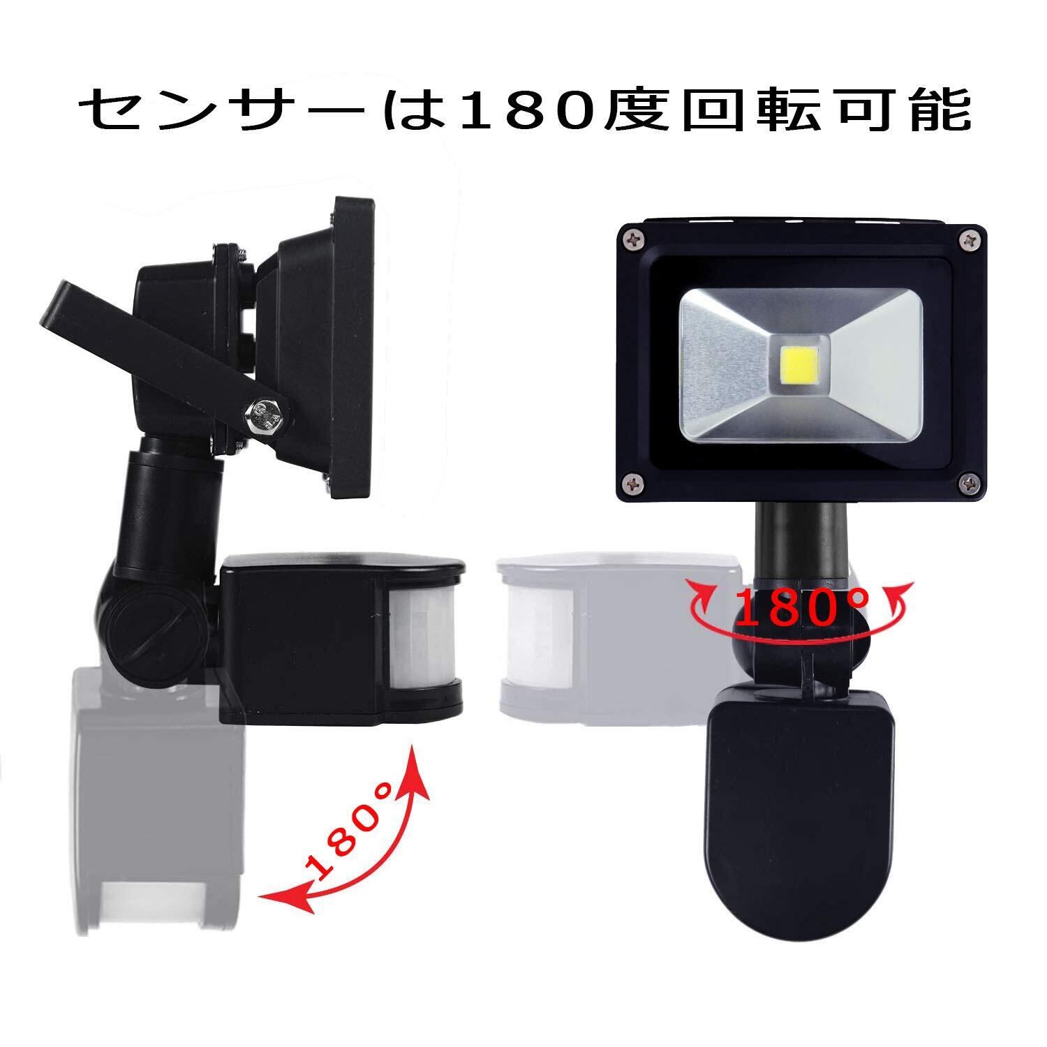 【2025最新】10W LED投光器人感センサーライト屋外100v PIR 防犯ライト昼白色 6000K IP66防水防雨安全非常灯 自動消灯 高輝度 1000LM 省エネ センサー照明 ac電源コード2.2M 取付簡単100W相当じんかん玄関灯 明暗センサー 設置簡単エリア照明器具 駐車場/倉庫/廊下/庭の防犯日本語説明書付き【PSE認証済】