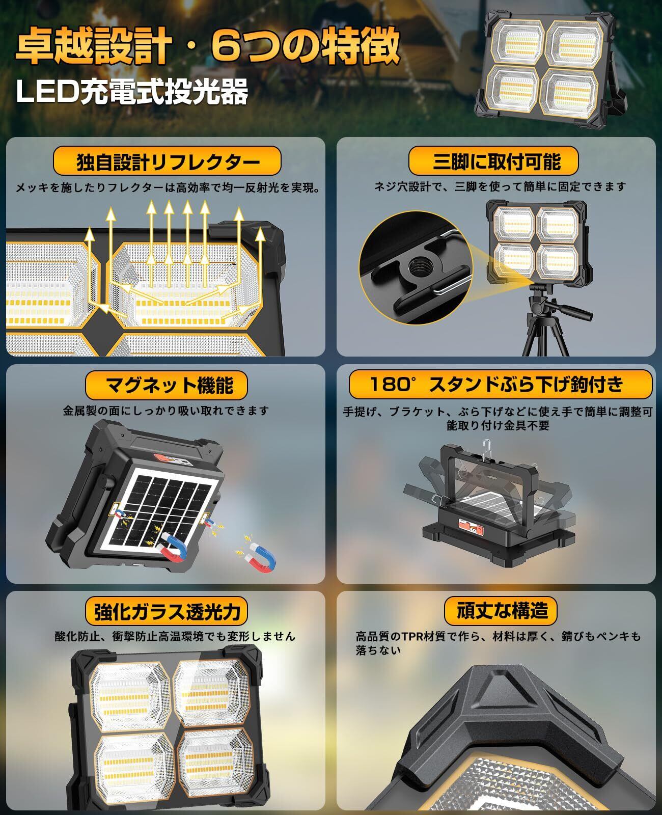 【数量限定】【極高輝・点灯15~25時間】TANKAO 投光器 充電式 led 作業灯 300W 明るさ26000ルーメン 屋外 超高輝 26000mAh大容量電池 残量表示 5種類点灯モード 最強 ワークライト 耐塵耐水 便携式 太陽光発電 磁気設計 キャンプ アウトドア 登山 夜釣り 夜間訓練 作業用 停電 防災 地震 避難対策 (300W)