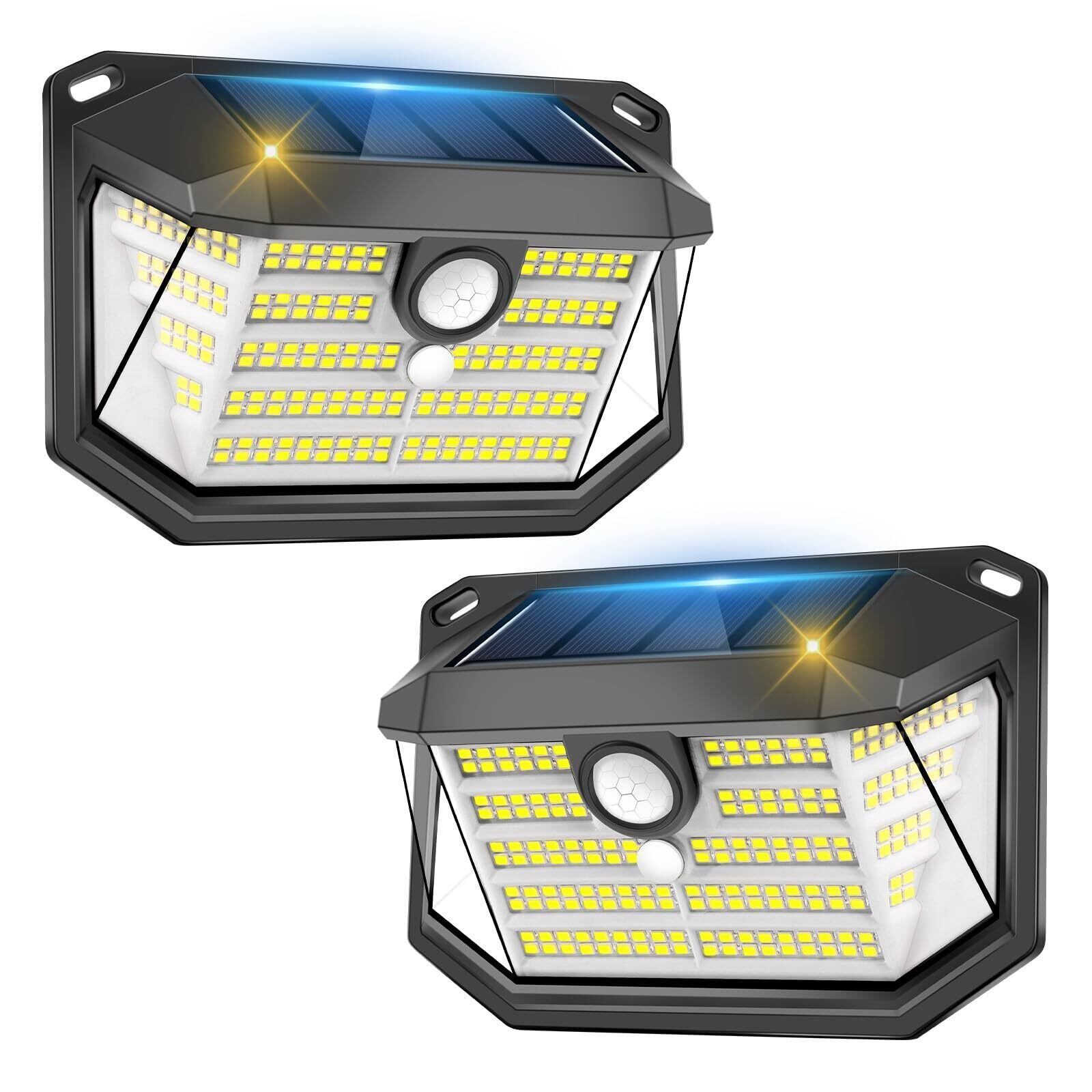 【特価セール】ソーラーライト 屋外 階段 センサーライト【IP65防水 3面発光 2200mAh大容量 3つ知能モード 230個高輝度LED】電気代0 高感度 防犯ライト 自動点灯 &消灯 設置簡単 防災対策 ガーデン/壁掛け/庭先/表玄関/駐車場/停電時適用 (二個セット)