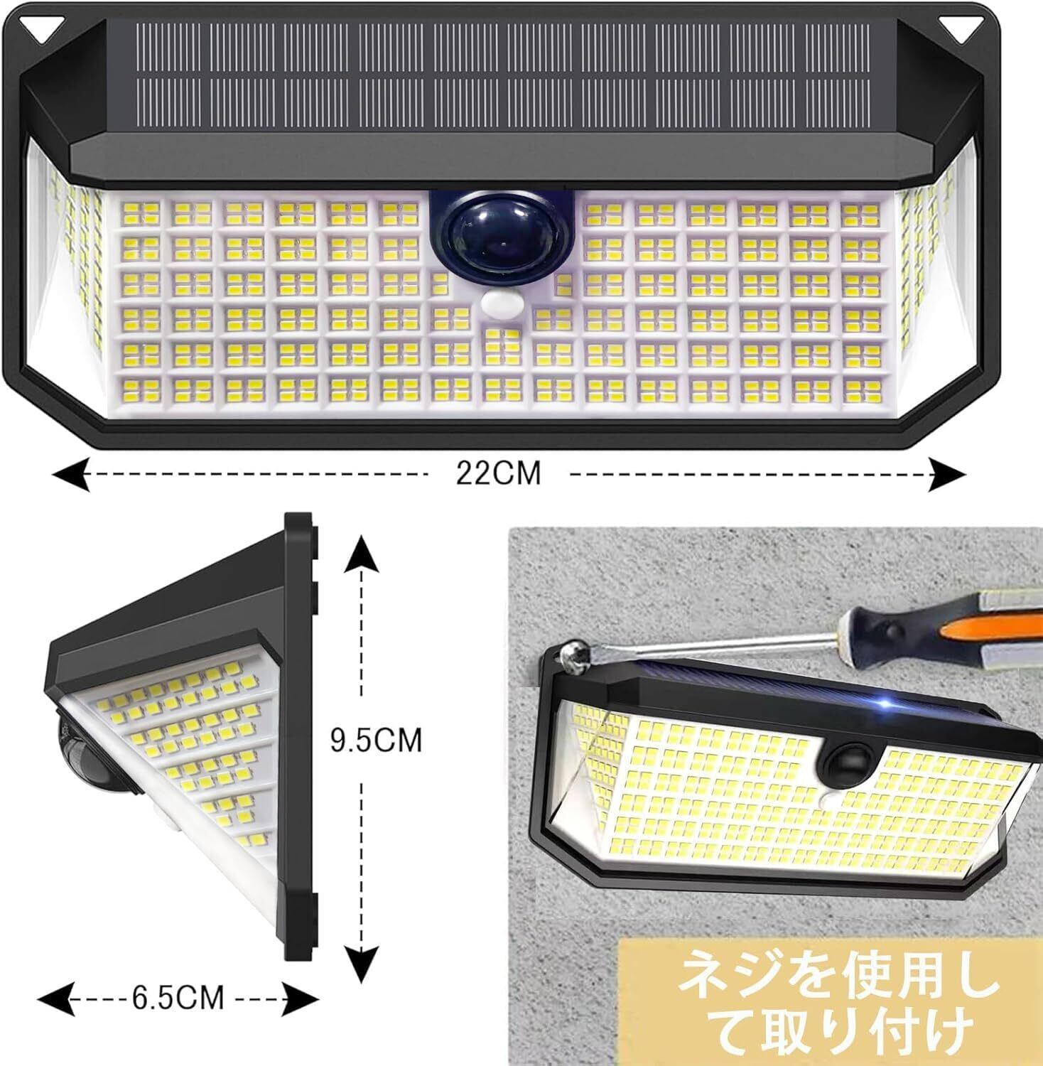 【466個高輝度LEDソーラーライト 屋外 防水】のソーラーライトは466個高輝度のチップを搭載しており、従来の製品よりも大きく、照明効果に優れています。3面発光のデザインで照明角度は最大270°で、照明範囲は広くで照明効果はもっとよくなります。小型でコンパクトなデザインなので、設置や保管の自由度が非常に高いです。