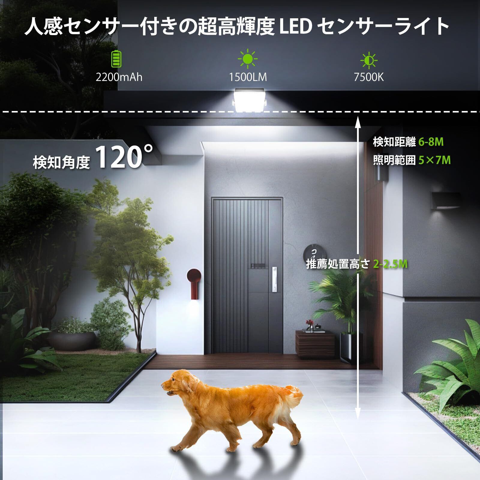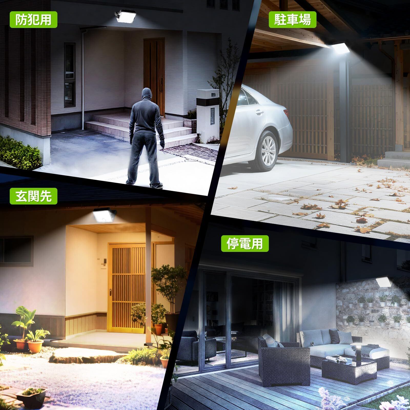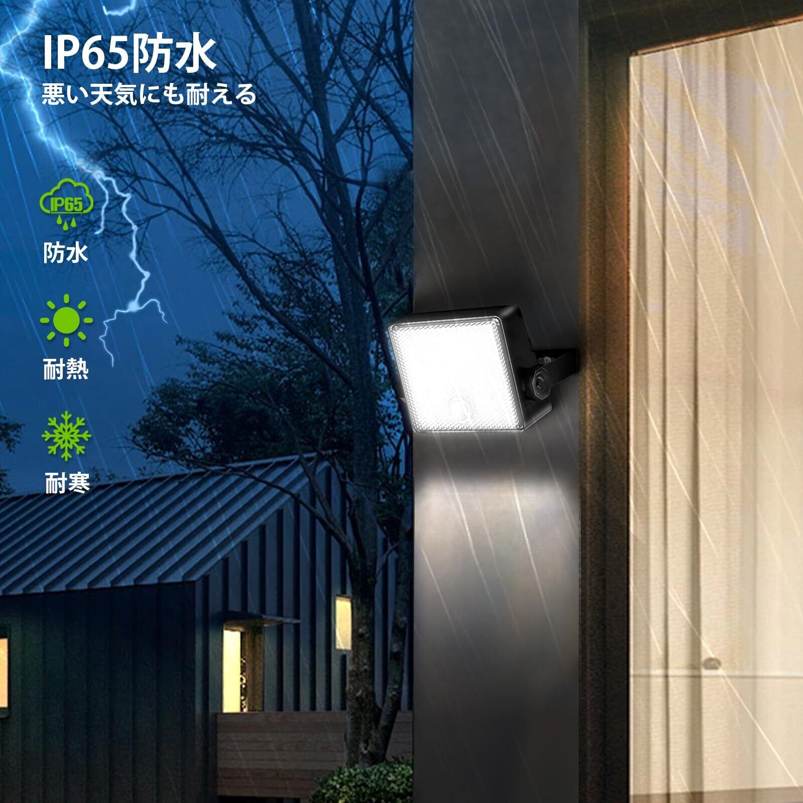 【IP65防水・屋外照明】IP65の防水性能が備わり通常の雨にも対応できる防水性のあるledセンサーライトです。優れた防塵・防水性能により、外に設置した場合は雨の日にも安心ご利用できます。また、2200mAh超大容量バッテリーが満充電後一晩中点灯!防災ライトとしては、地震や台風などの災害による停電時に重宝します。庭、玄関、駐車場、ガーデン、公園、旅館、通路など屋外照明に大活躍!