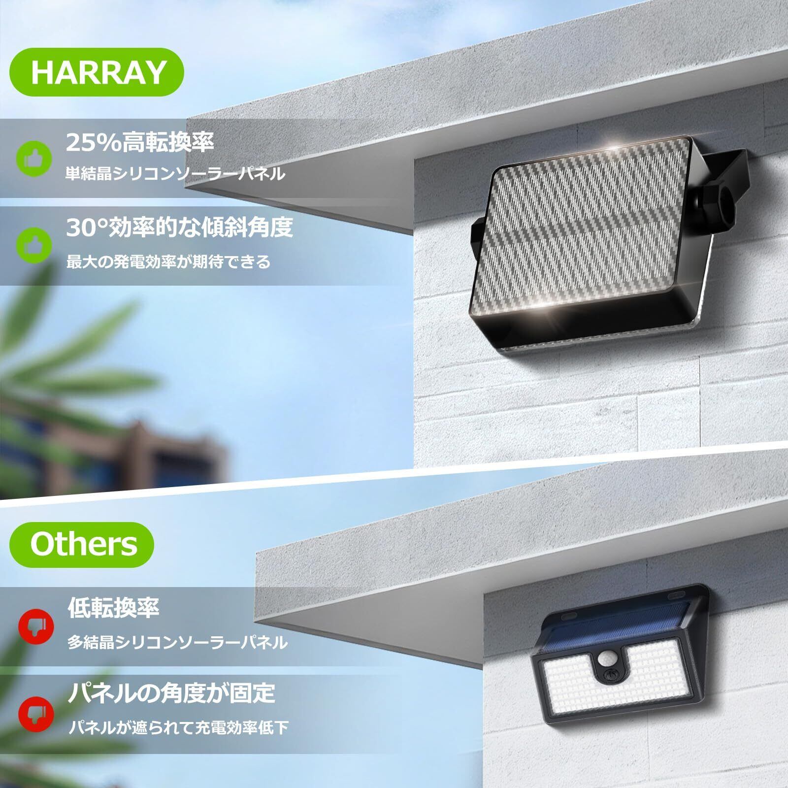 【HAARAY第8世代自動ソーラーライト】ソーラーライトは周囲の光レベルに基づいて、自動的にライトの向きを切り替えるインテリジェントな機能が装備されています。太陽光を感知すると、ライトが自動的にソーラーパネル側に向きを変え、ソーラーパネルで充電を行います。夜間暗くなると、ソーラーパネルが自動的にライトの側に向きを変え、夜間により強い光を提供できます。弊店の最新版だけでなく、市場ではLEDソーラーライトシリーズで機能と性能が最新分離型ledセンサーライトです。