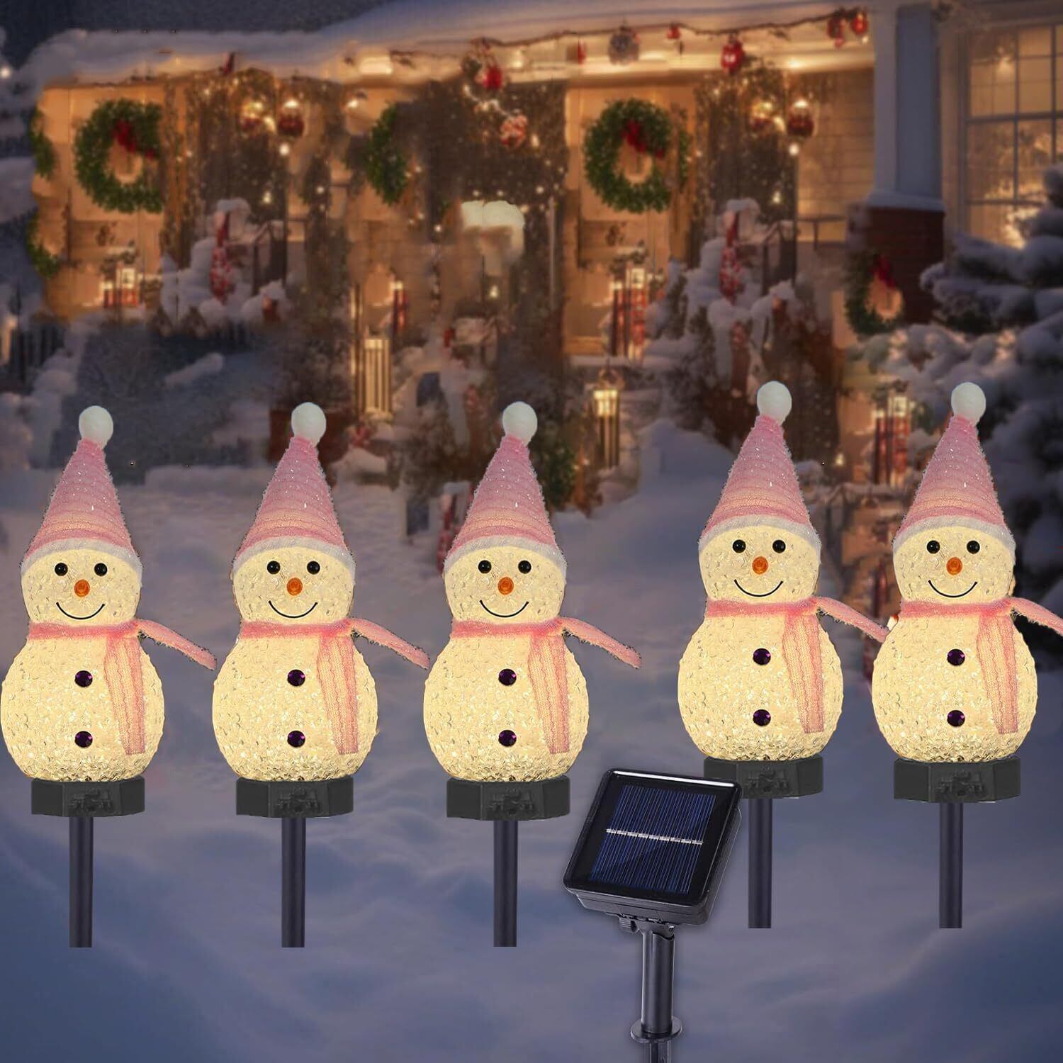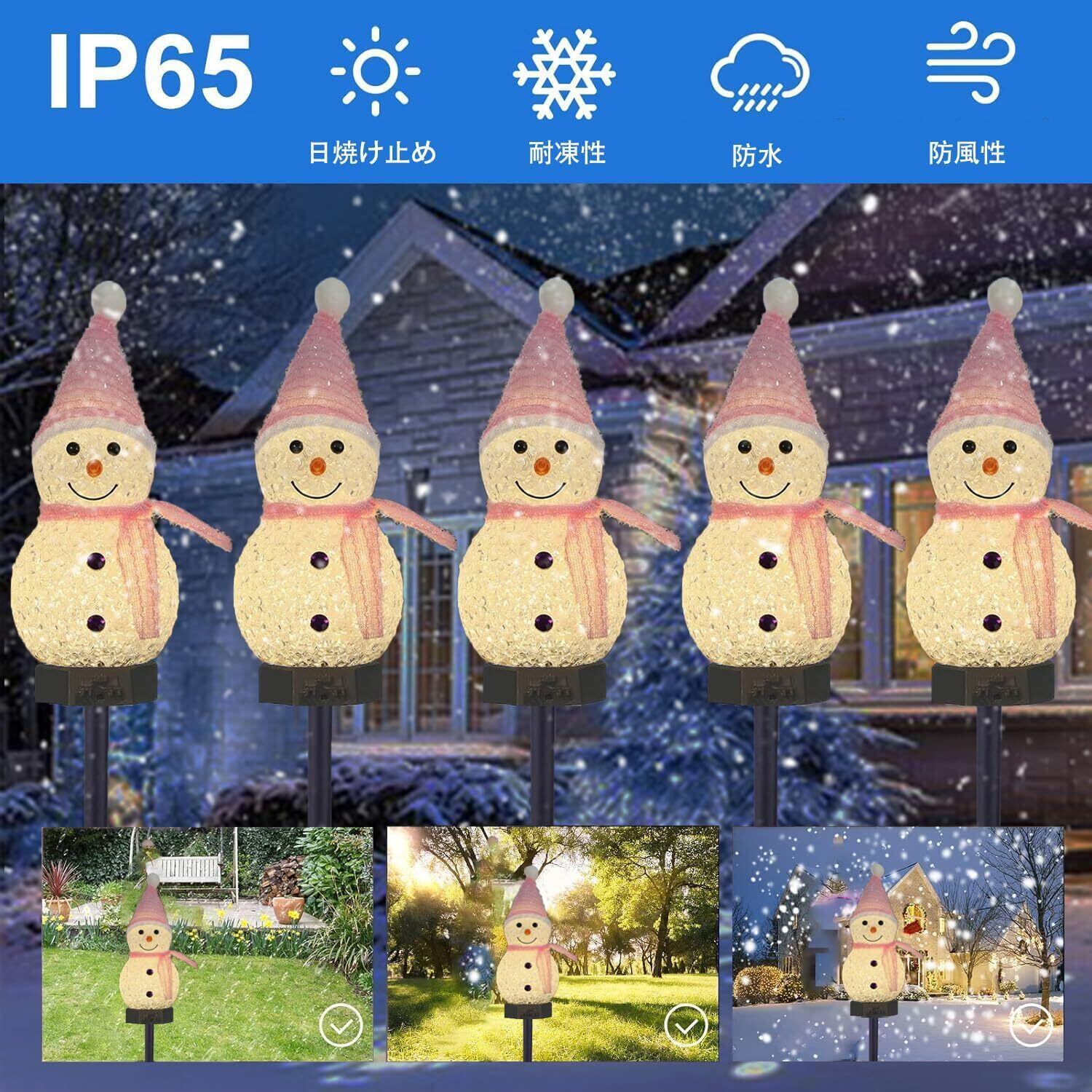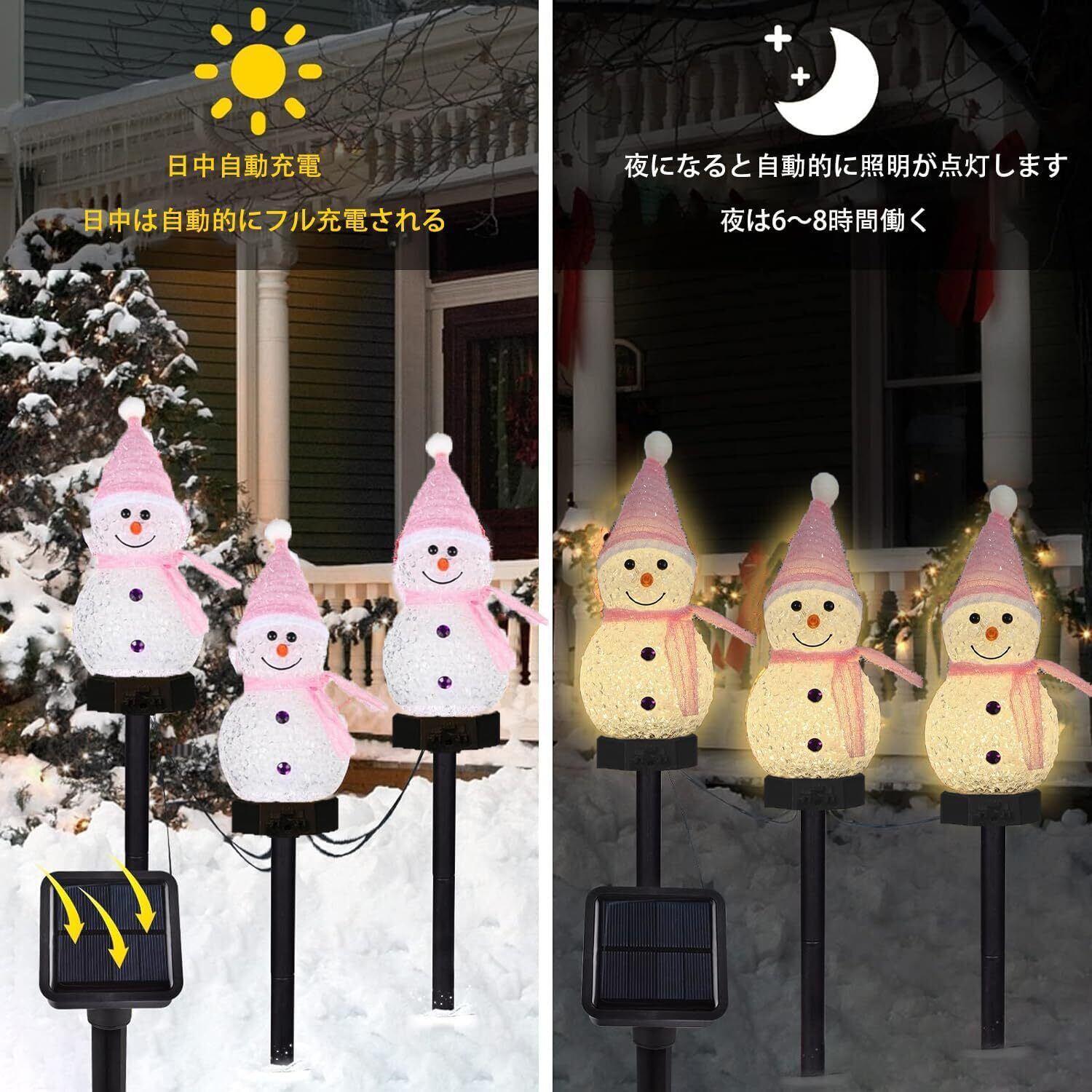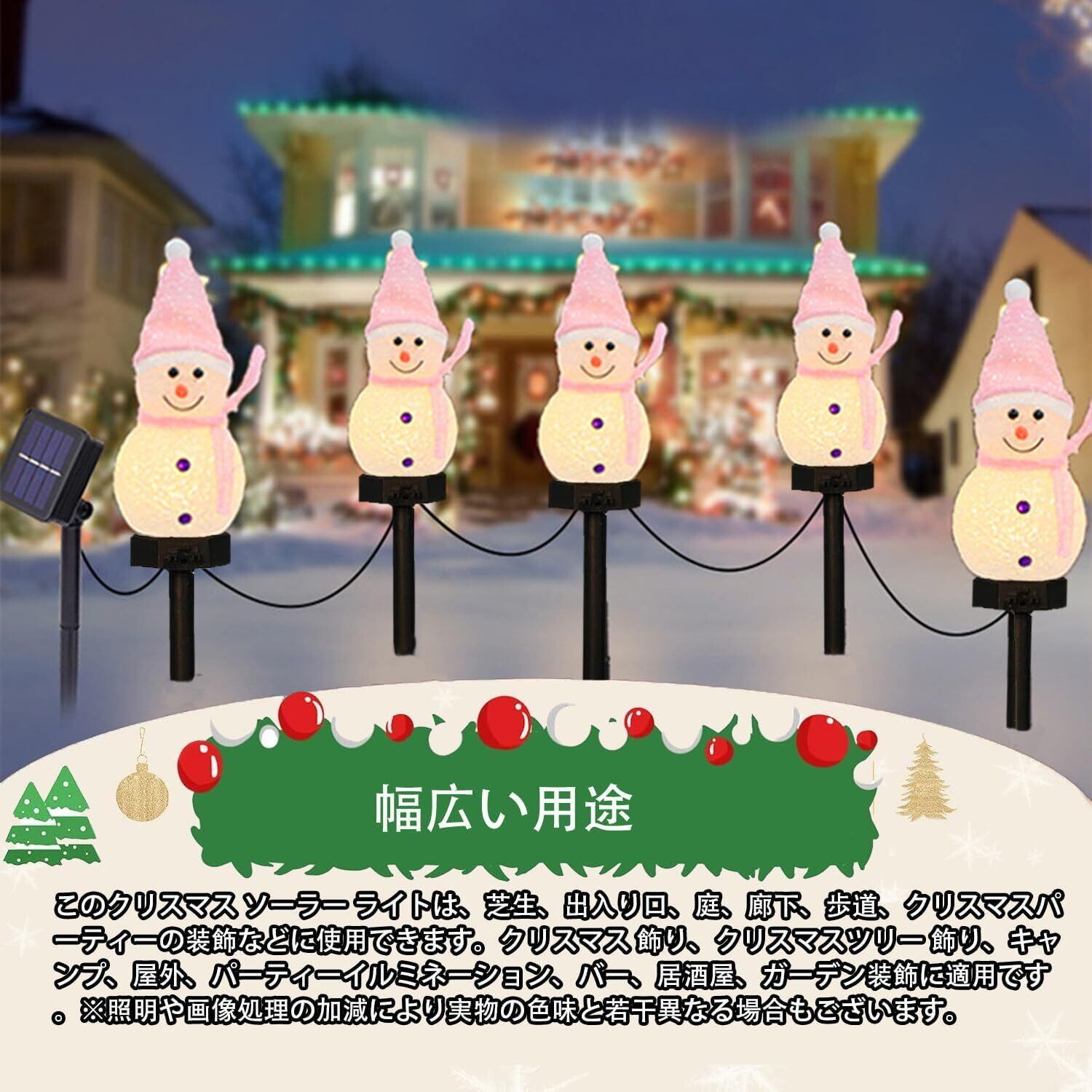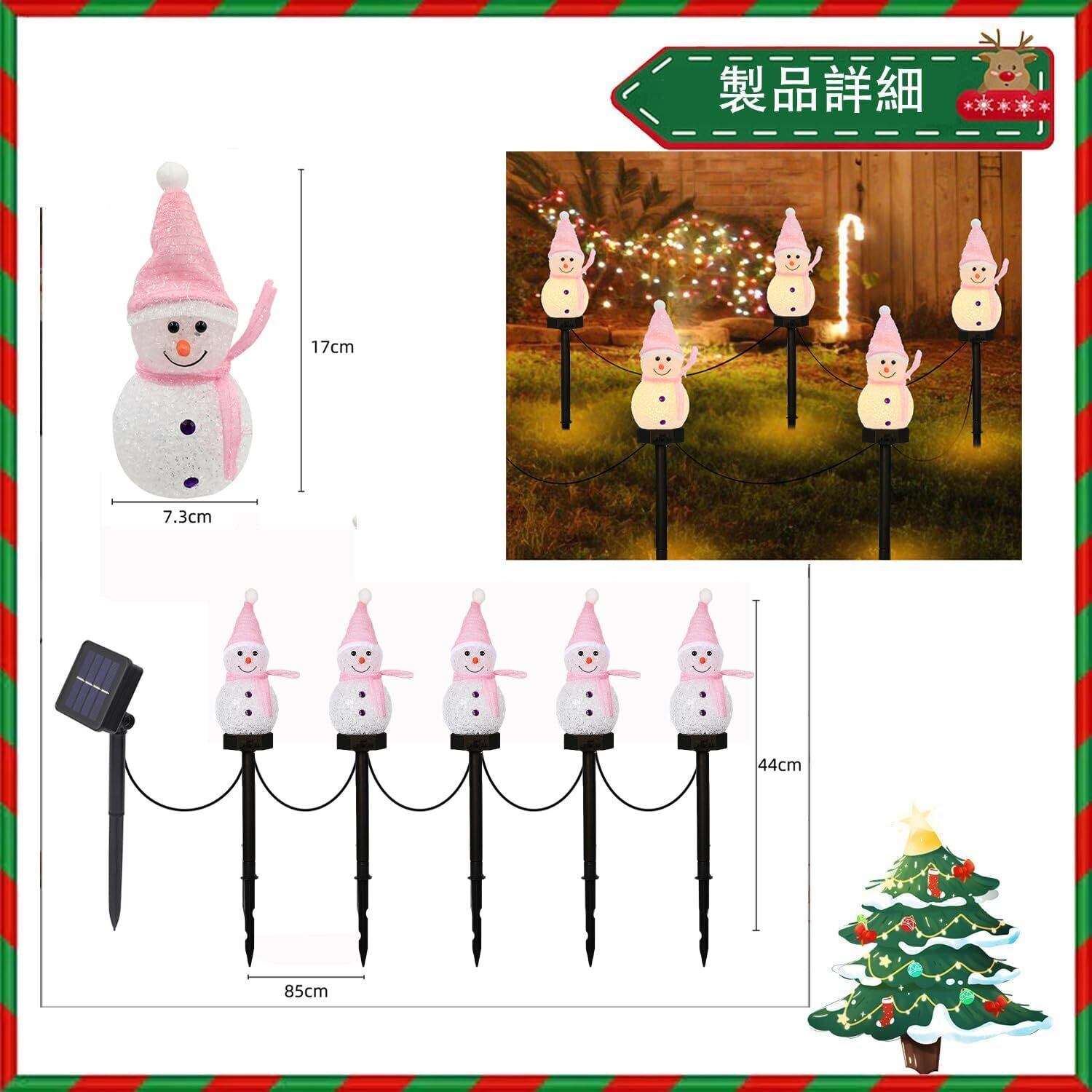 ソーラー ガーデンライト 置物ライト クリスマス イルミネーション 雪だるま クリスマス 飾り LED 屋外 防水 ソーラー 埋込み式 夜間自動点灯 お祝い パーティー飾り led 照明 (ピンク5連)