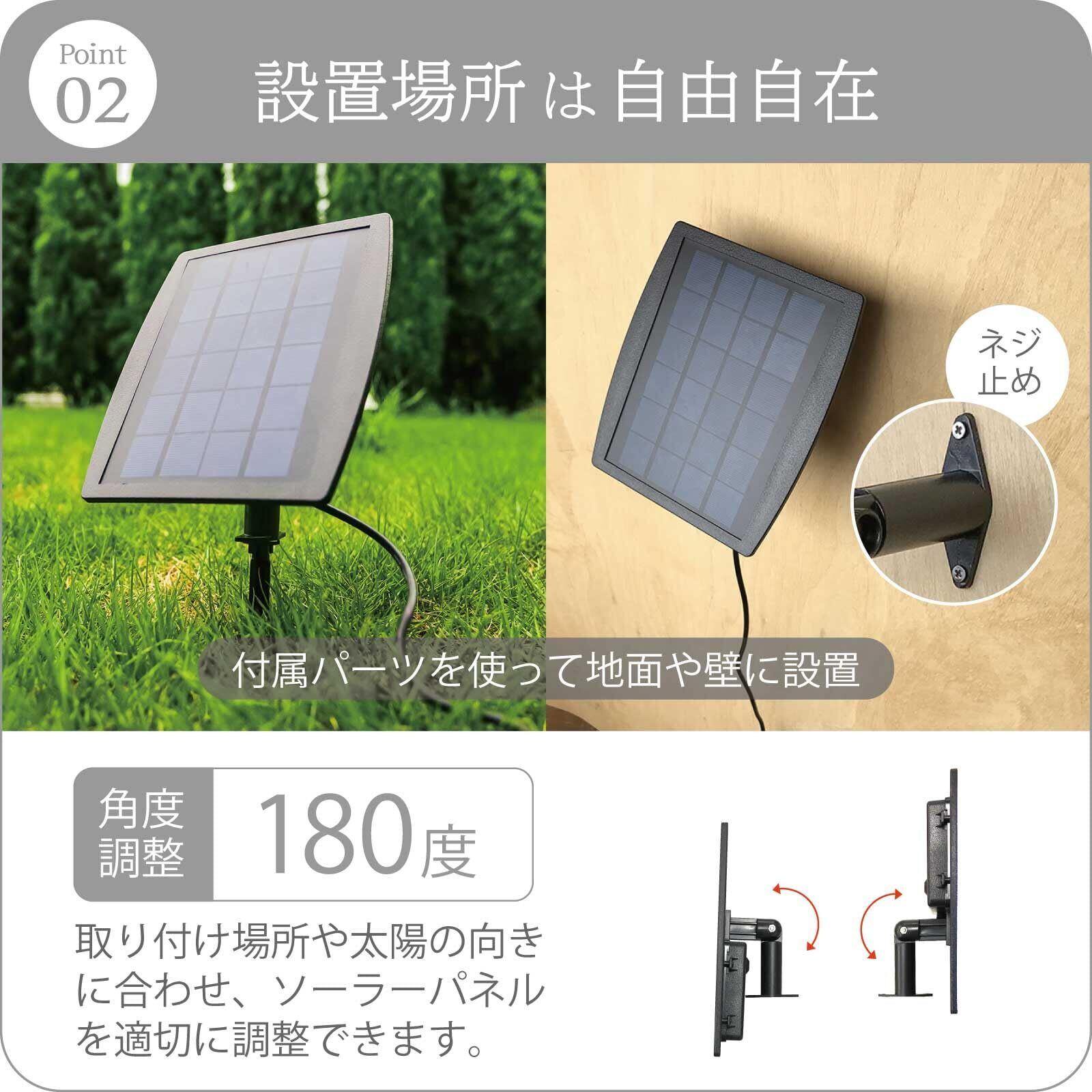 【商品の特徴】 [ENTLIGHT]B-02は、2本のコードに高輝度スポットライトが搭載されたガーデンライトです。ライトやソーラーパネルがそれぞれ独立しているため、様々な場所に設置することが可能です。