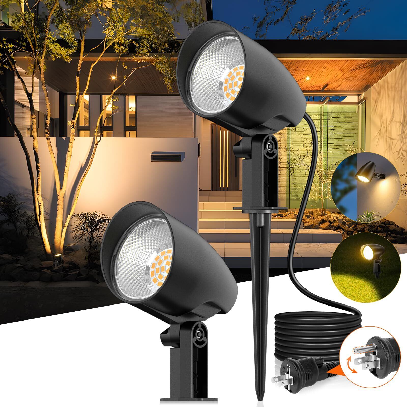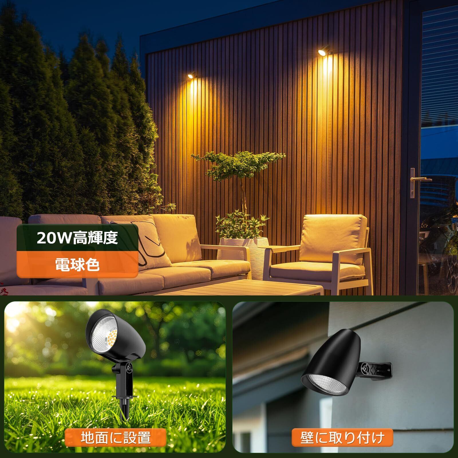 【2025最新】【全アルミ製 20W LEDスポットライト】MEIKEE 2000lm ガーデンライト コンセント式 電球色 IP66防水 2P/3Pプラグ切替 1.5m電源コード 2年 2way取り付け 回転可能 5万時間の寿命 配線不要 庭園 ガーデン 芝生 駐車場 家の前 歩道 植栽 2個セット