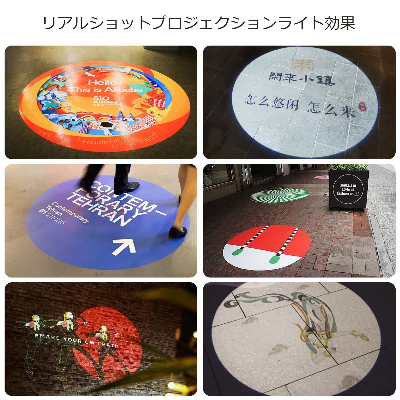 【ハイビジョンパターン投影】先進的なLED光源と精密な光学レンズを利用して、私たちの広告灯ははっきりした、明るいパターンを投影することができます。企業ロゴ、製品画像、特殊な文字情報を壁、床、天井に高品位で投影できます。