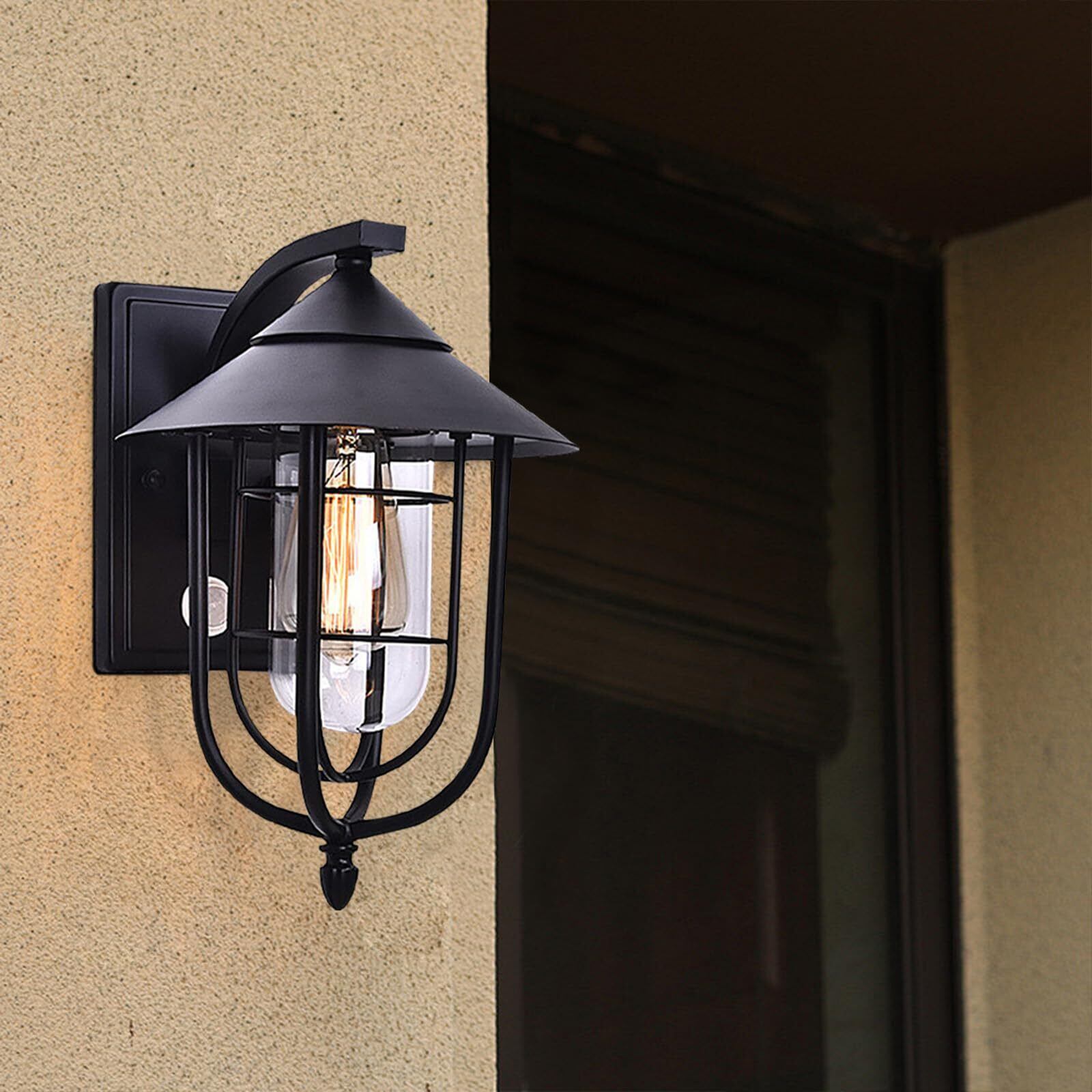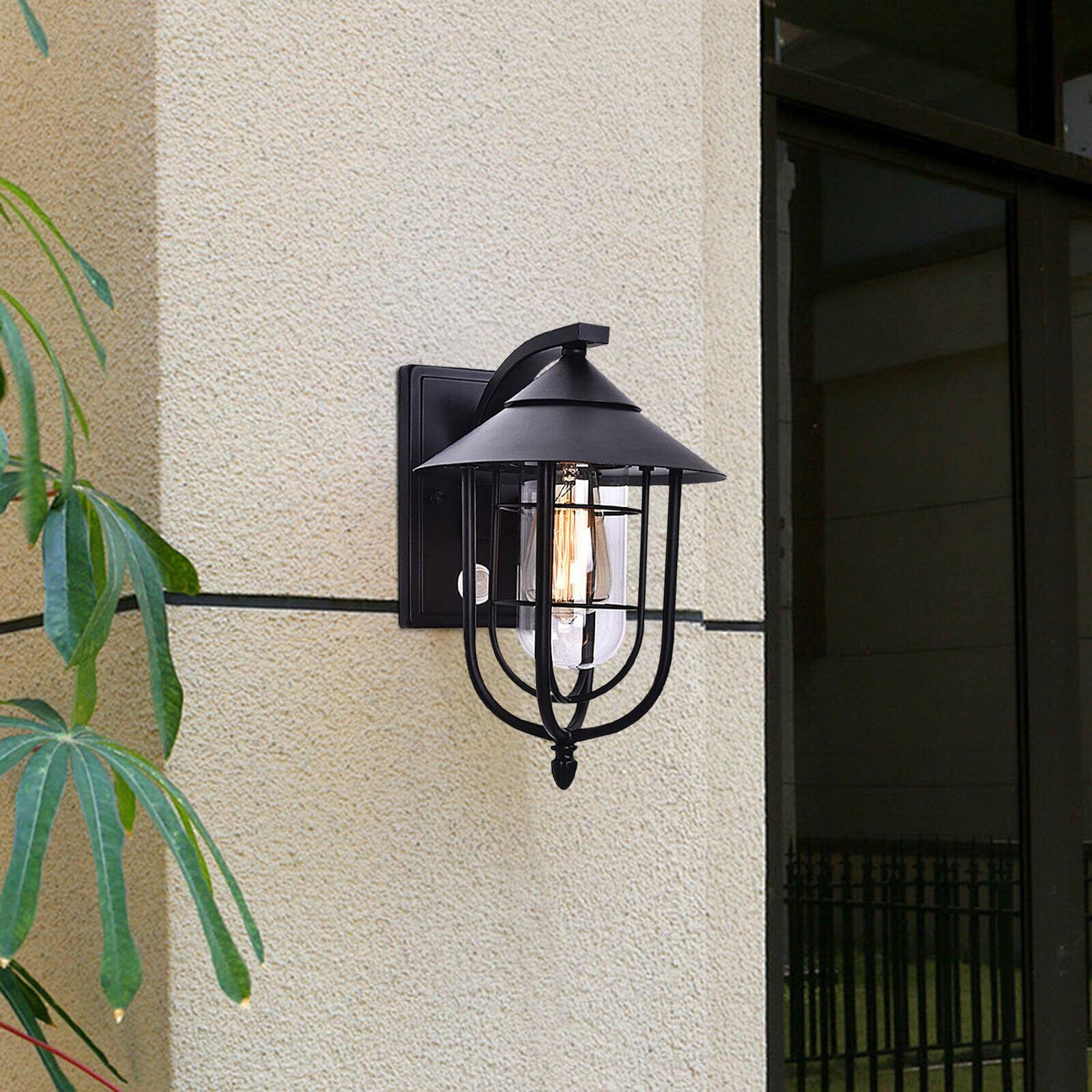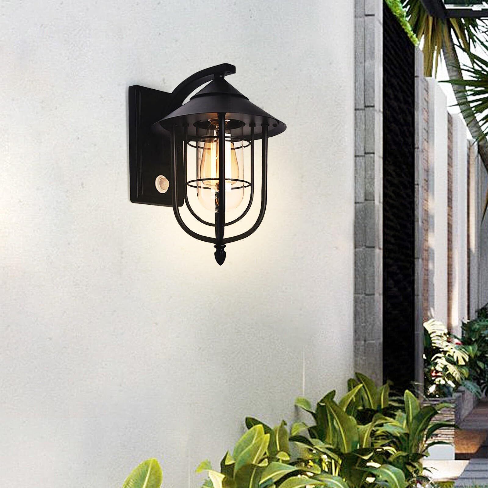 KAWELL 照明 玄関灯 人感センサー 玄関ライト 明暗センサー 夜間自動点灯 屋外 ポーチ ウォールランプ レトロなウォールライト 庭園灯 防雨型 壁掛け 外灯本体E26口金 (ブラック, M)