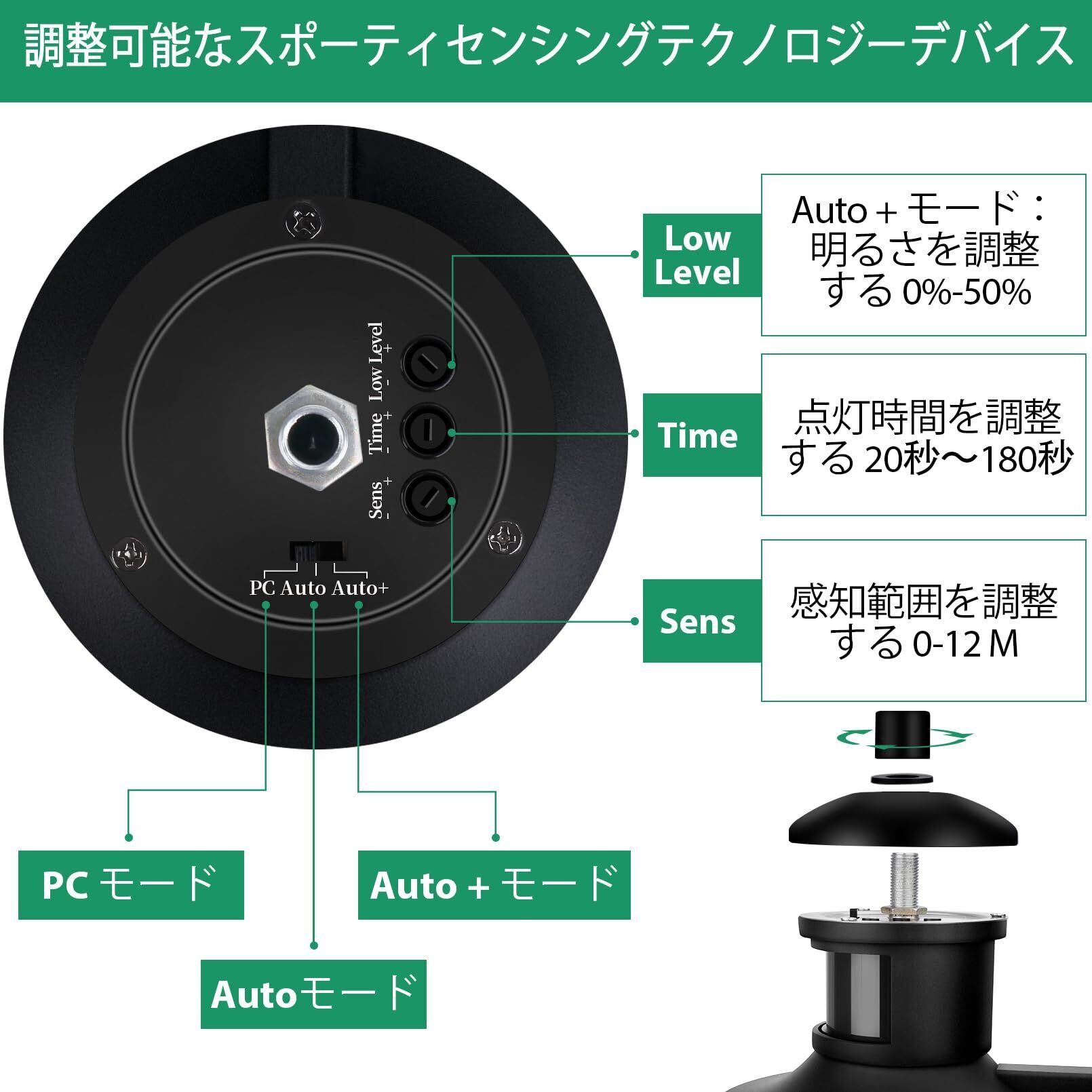 人感センサーと明暗センサーで省エネ:当社の屋外照明器具は6年以内に開発された革新的な技術で、3つの照明モード(PC、Auto、Auto+)から選択できます。モーションセンサーのセンサー距離 (0 ~ 12 メートル)、点灯時間 (20 ~ 180 秒)、および照明の明るさを 0% ~ 50% で設定できます (Auto+ モードのみ)。