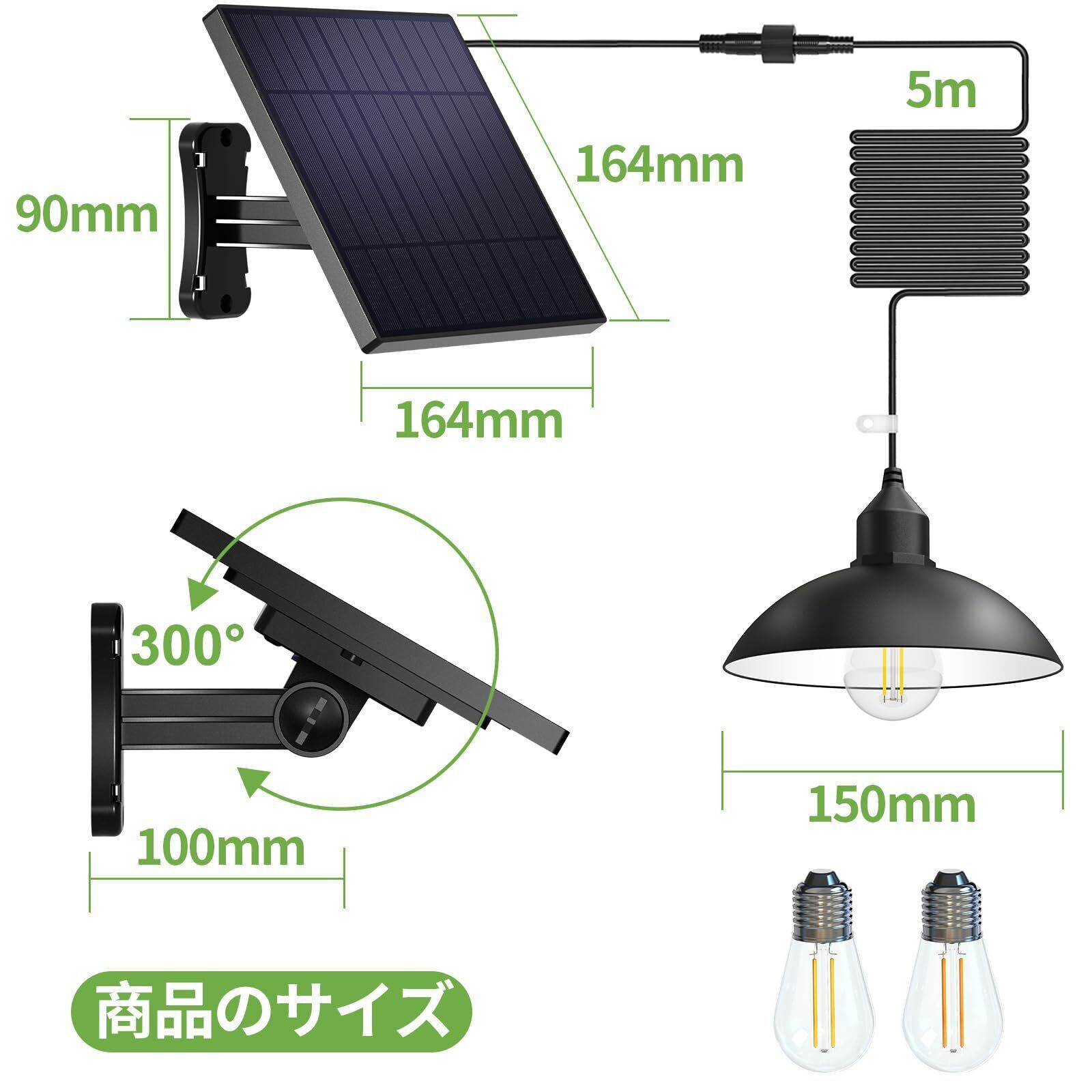 【取り付け簡単・多用途に対応】 付属の16.4フィート(約5m)の延長コードで、自由な配置が可能。ソーラーパネルは日当たりの良い屋外に設置し、ライト本体はワイヤークリップや枝などに吊り下げて設置できます。パティオ、バルコニー、芝生、通路など、さまざまな場所で活躍します。