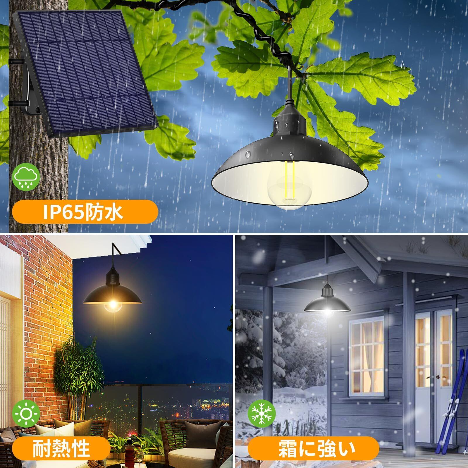 intelamp ソーラー吊り下げライト 屋外 防水 5M延長コード リモコン操作 ソーラーペンダントライト (4000mAh大容量電池 分離型)室内 ソーラー 屋外 照明 高輝度 屋外 防犯ライト ガーデン/壁掛け/庭先/表玄関/駐車場/停電時適用 防災