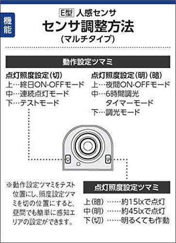 ●電球色<br>●LED一体型<br>●マルチタイプ/白熱球60W相当<br>●人感センサ付<br>●アルミダイカスト・アンティーク色塗装<br>●ガラス・透明ひび焼き<br>●E型/防雨型<br>●光源寿命:40,000時間<br>●消費電力:8.1W<br>●色温度:2700K<br>●演色性:Ra83<br>●定格光束:350lm