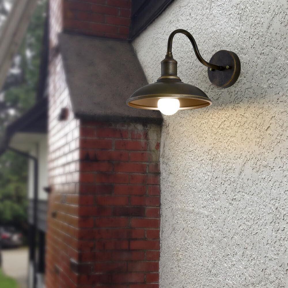 ヴィンテージ屋外 IP54 防水壁取り付け用燭台 9.4 インチ アイアン グースネック 納屋ライト アンティーク ファームハウス ウォールマウント 外壁ランプ 屋外壁照明 ポーチ ガレージ パティオ 出入り口用