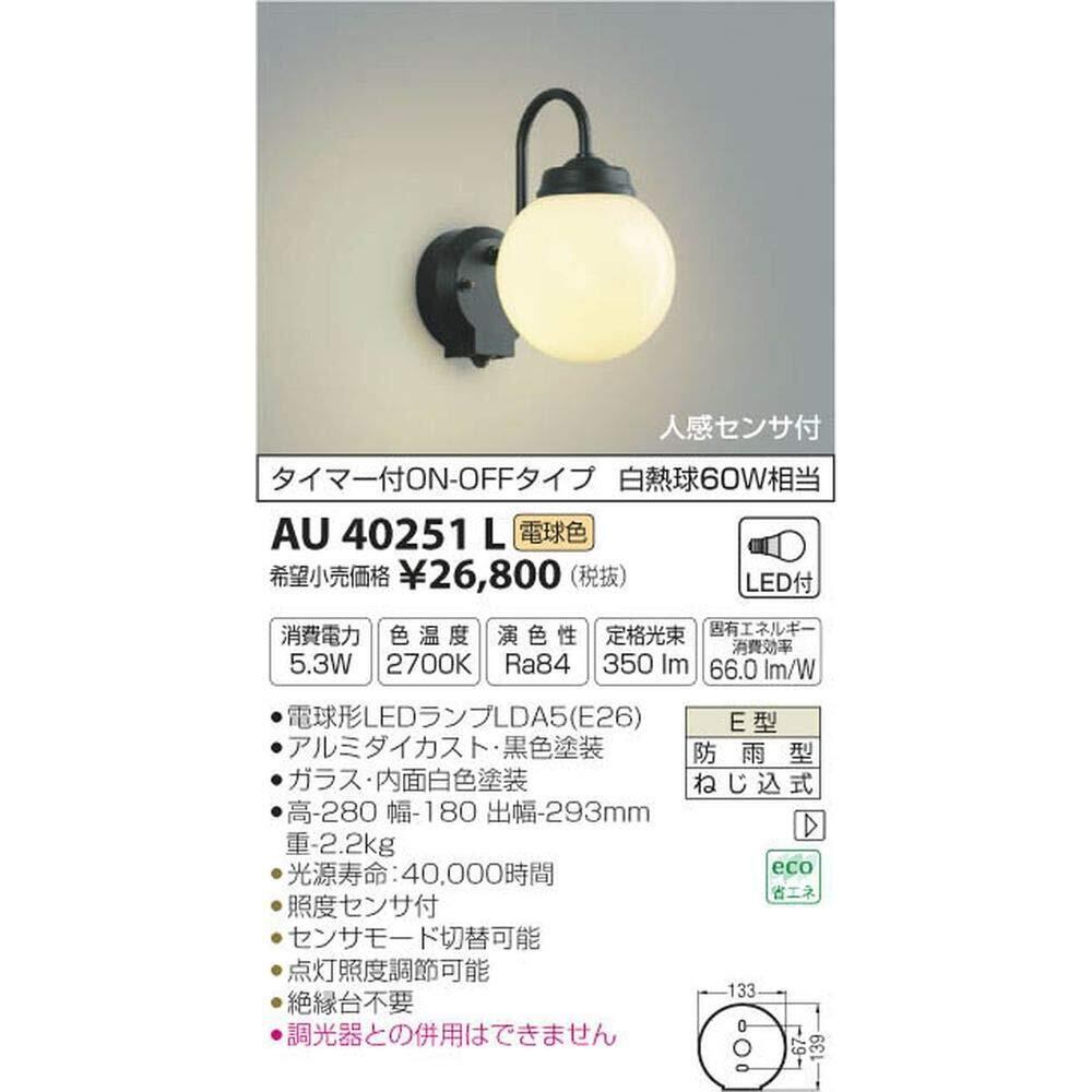 コイズミ照明 人感センサ付ポーチ灯 タイマーON-OFFタイプ 白熱球60W相当 黒色塗装 AU40251L