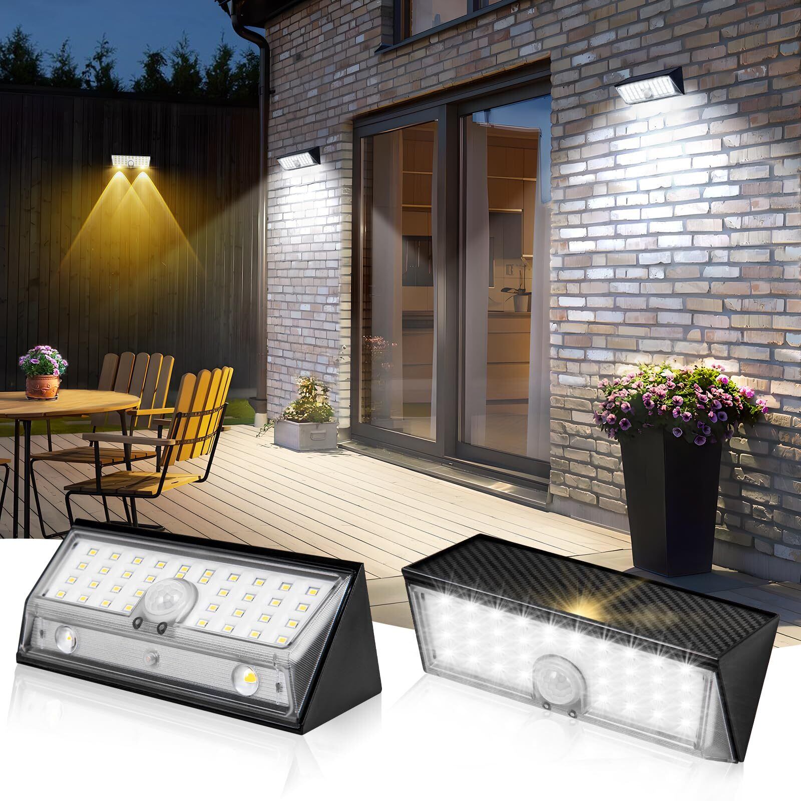 AGOTD ガーデンライト 屋外 ソーラー 人感センサー 付き 2色切り替え 38LED 4つ 照明モード 壁掛け 自動点灯 IP65 防水 高輝度 省エネ 玄関 庭 駐車場 表札灯 フェンス用 昼光色/電球色(2個セット)