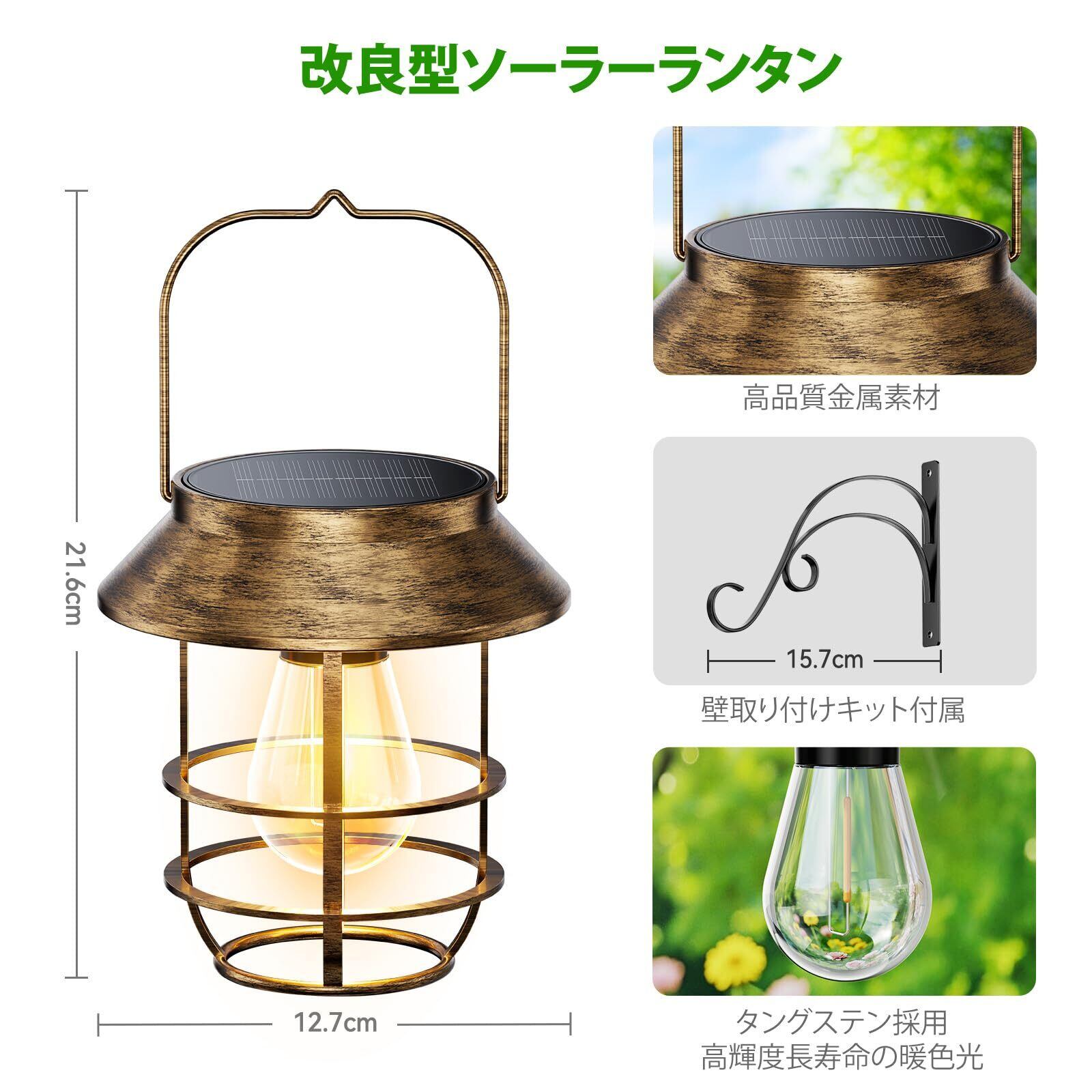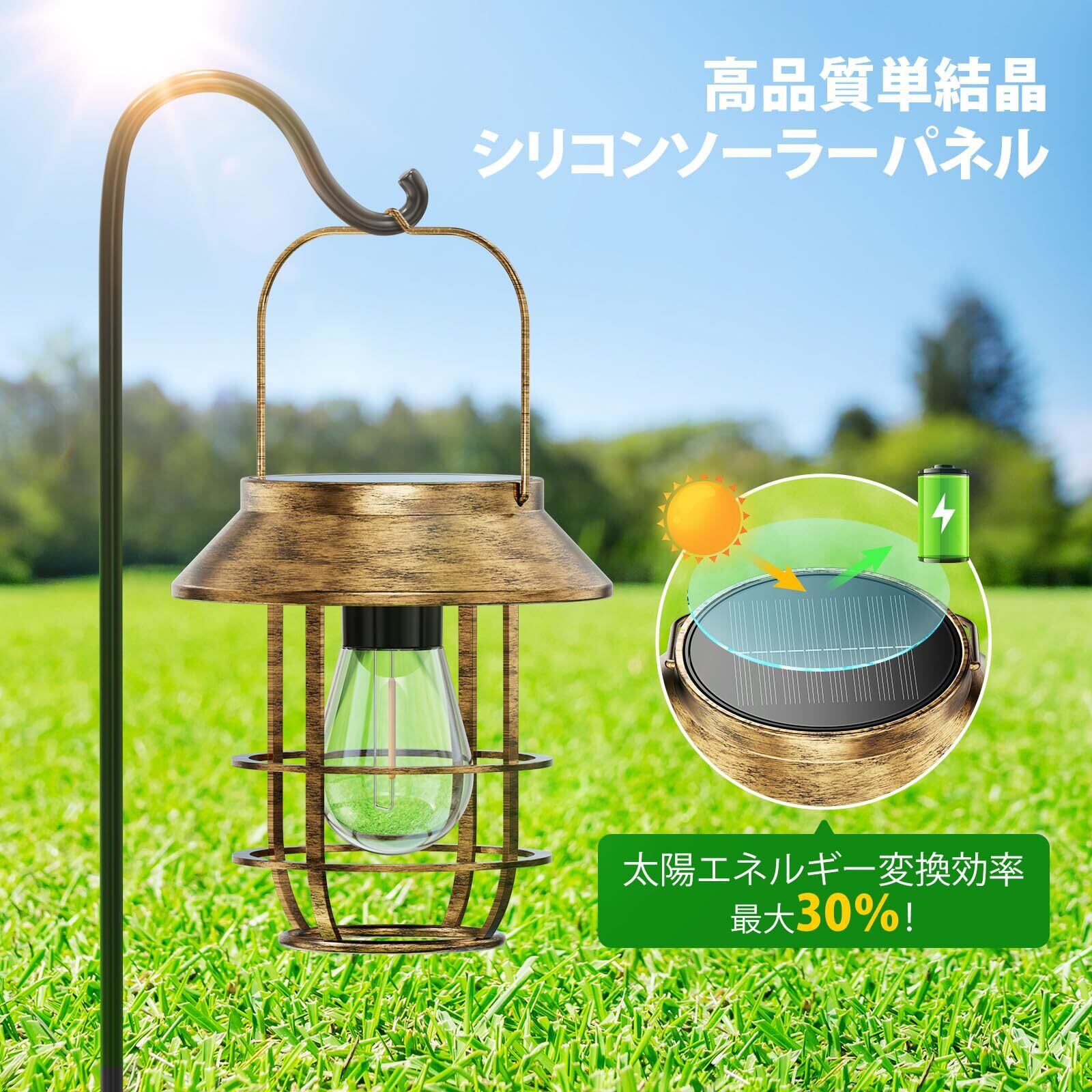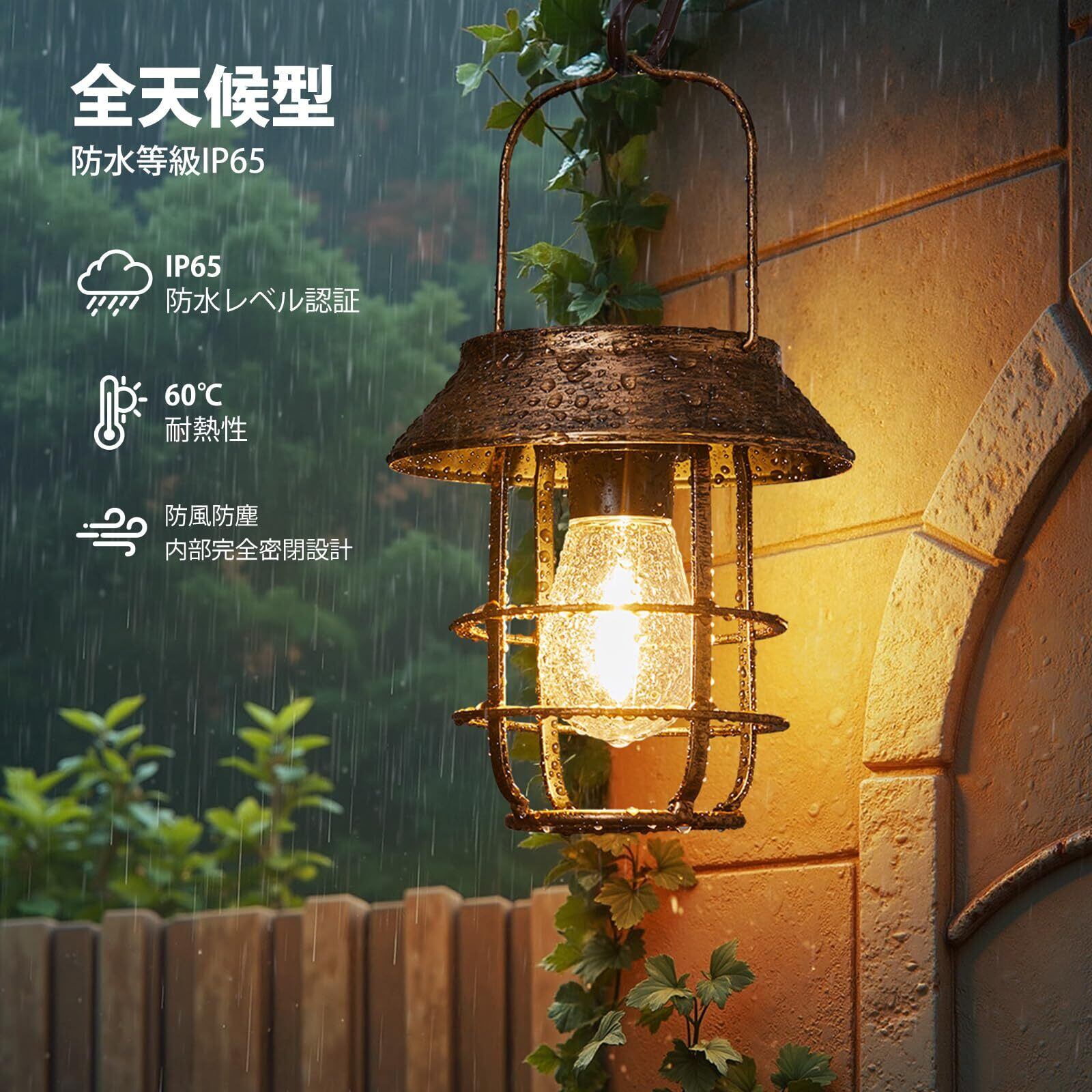 【数量限定】Letmy ソーラーライト 屋外 防水 ソーラーランタン ガーデンライト 鉄製 おしゃれ ledランタン 電球色 太陽光パネル充電 夜明け 自動オン/オフ 庭、花壇、パティオ、玄関、ベランダ、壁、駐車場、歩道、パーティーなどに適用 屋外 照明 ガーデニング イルミネーション 2個セット