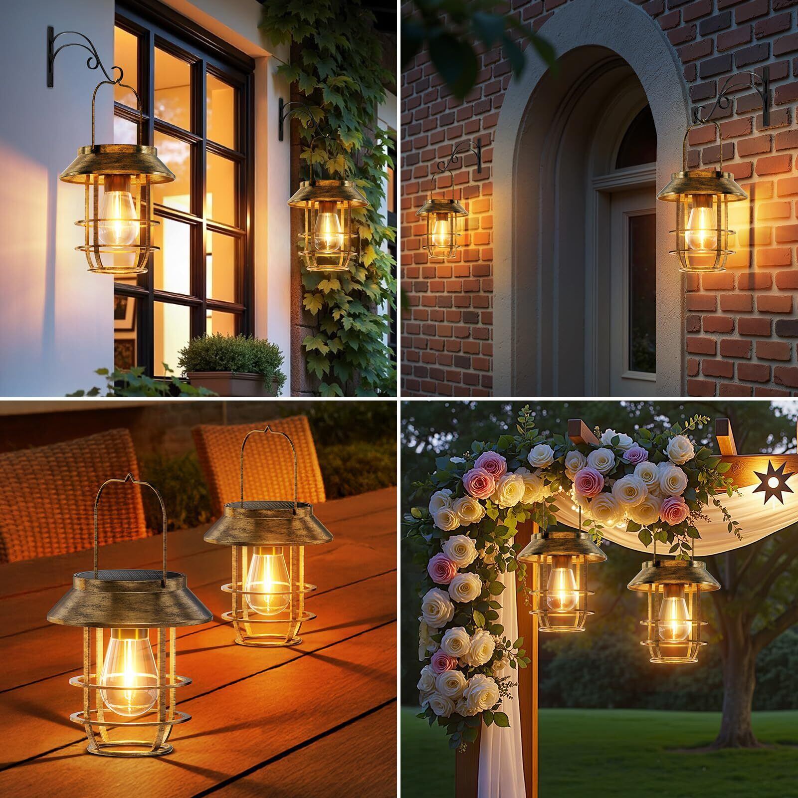 Letmy ソーラーライト 屋外 防水 ソーラーランタン ガーデンライト 鉄製 おしゃれ ledランタン 電球色 太陽光パネル充電 夜明け 自動オン/オフ 庭、花壇、パティオ、玄関、ベランダ、壁、駐車場、歩道、パーティーなどに適用 屋外 照明 ガーデニング イルミネーション 2個セット