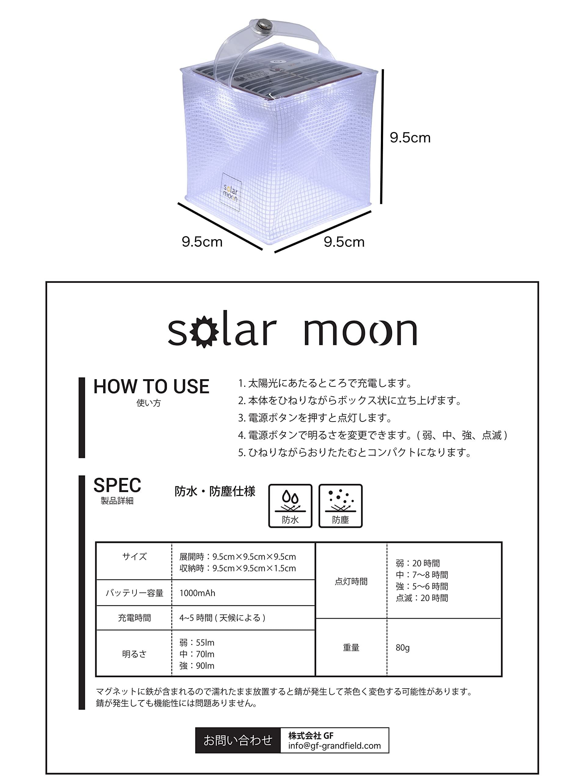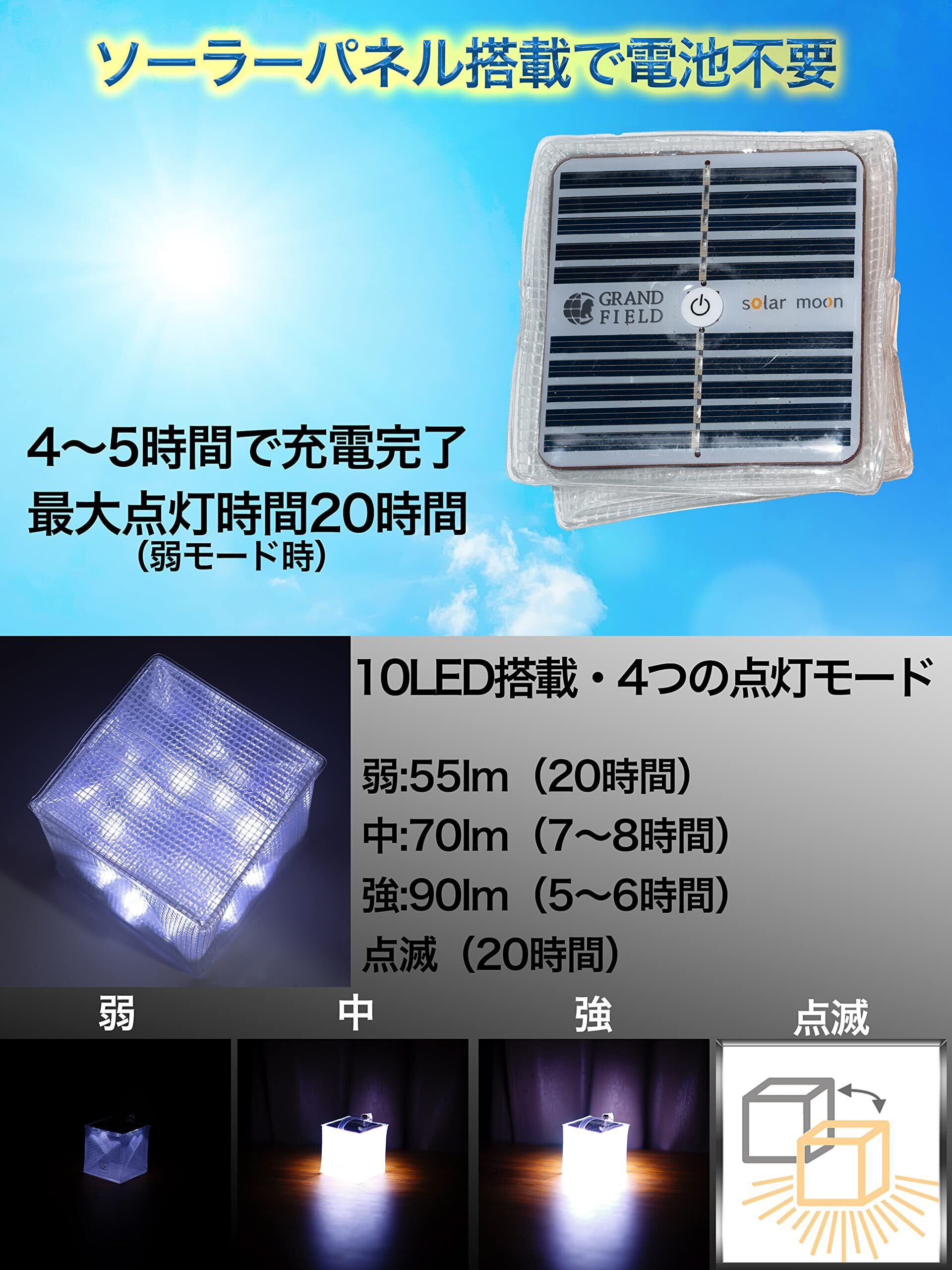 GRAND FIELD ソーラームーン ソーラーランタン LEDランタン 防水 軽量 80g 折り畳み ホワイト LED10灯 点灯時間20時間