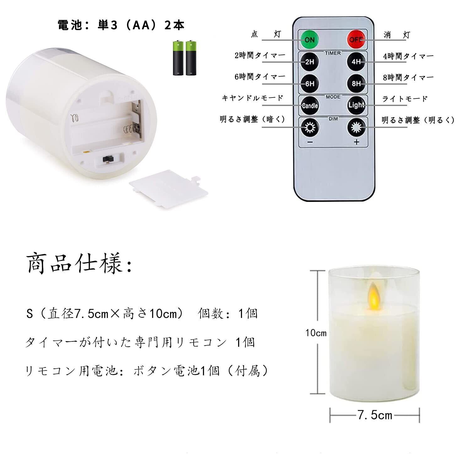 【電池式ledデザイン】サイズ:L(直径7.5cm×高さ15cm)。本LEDキャンドルは電池式で。本棚やファブリックの近くでも、心配ありません。そして、省エネで寿命が長いLEDライトだから、頻繁的に乾電池の交換が不要で、長くご使用いただけます,寿命は50,000時間以上です。電池で光るキャンドルライトは繰り返して利用できます。