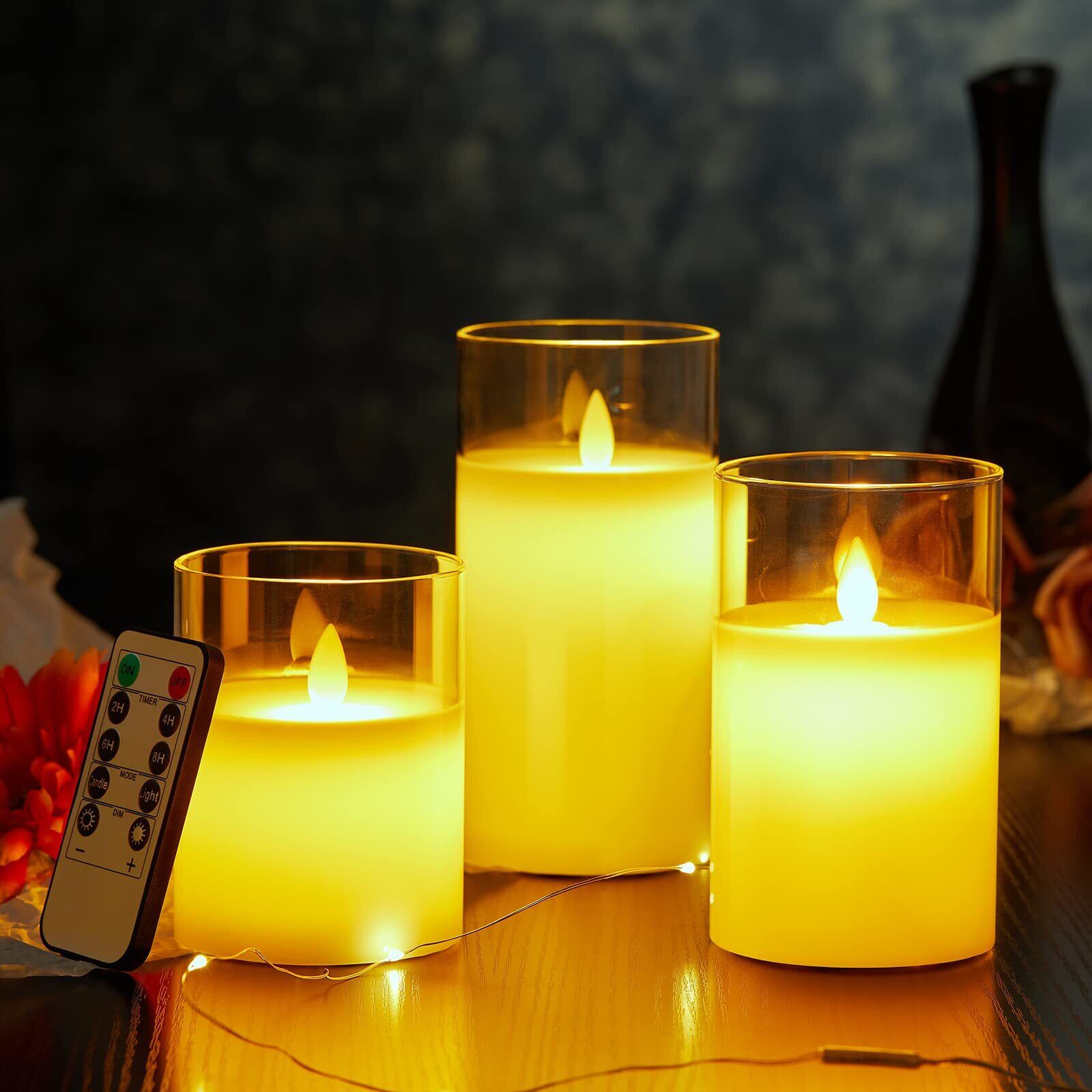 LEDキャンドルライト 電池式 本物の炎のようにゆらめ ろうそく MELEJIAリモコン搭載 タイマー機能 自動消灯 明るさ調整 暖色光 LEDロウソク インテリア 誕生日 ウェディング パーティー 雰囲気が良い LEDろうそく(直径7.5cm×高さ10cm)
