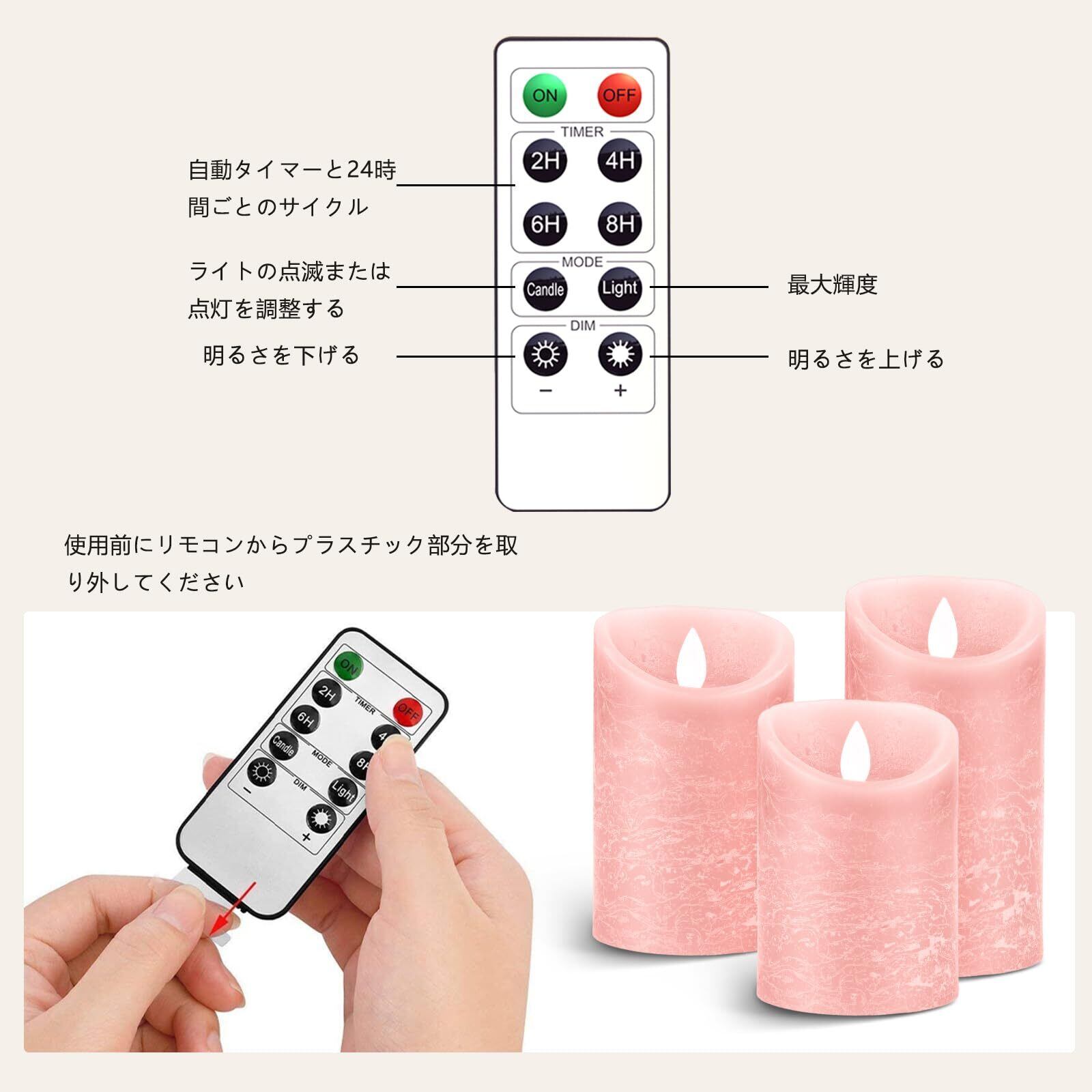 LEDキャンドルライト 3点セット リモコン付き 電池式 揺れる LED キャンドルライト 本物の炎のようにゆらめくLEDキャンドルライト 暖色光 無香料 火を使わない ゆらゆら揺れる 安全 省エネ ロウソク 蝋燭 誕生日 結婚式 パーティ ティーライト 間接照明 寝室 卓上 明るさ調整 LEDライトキャンドル (ピンク)