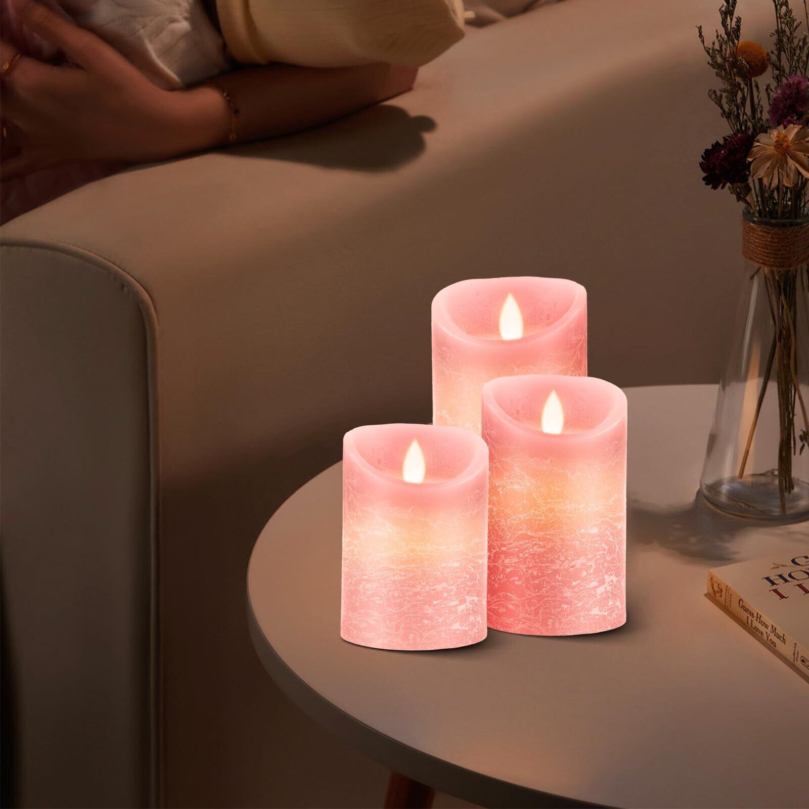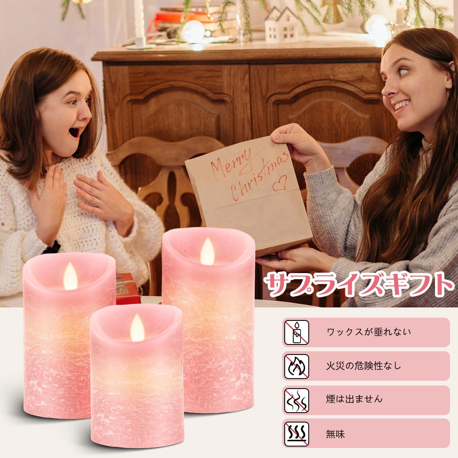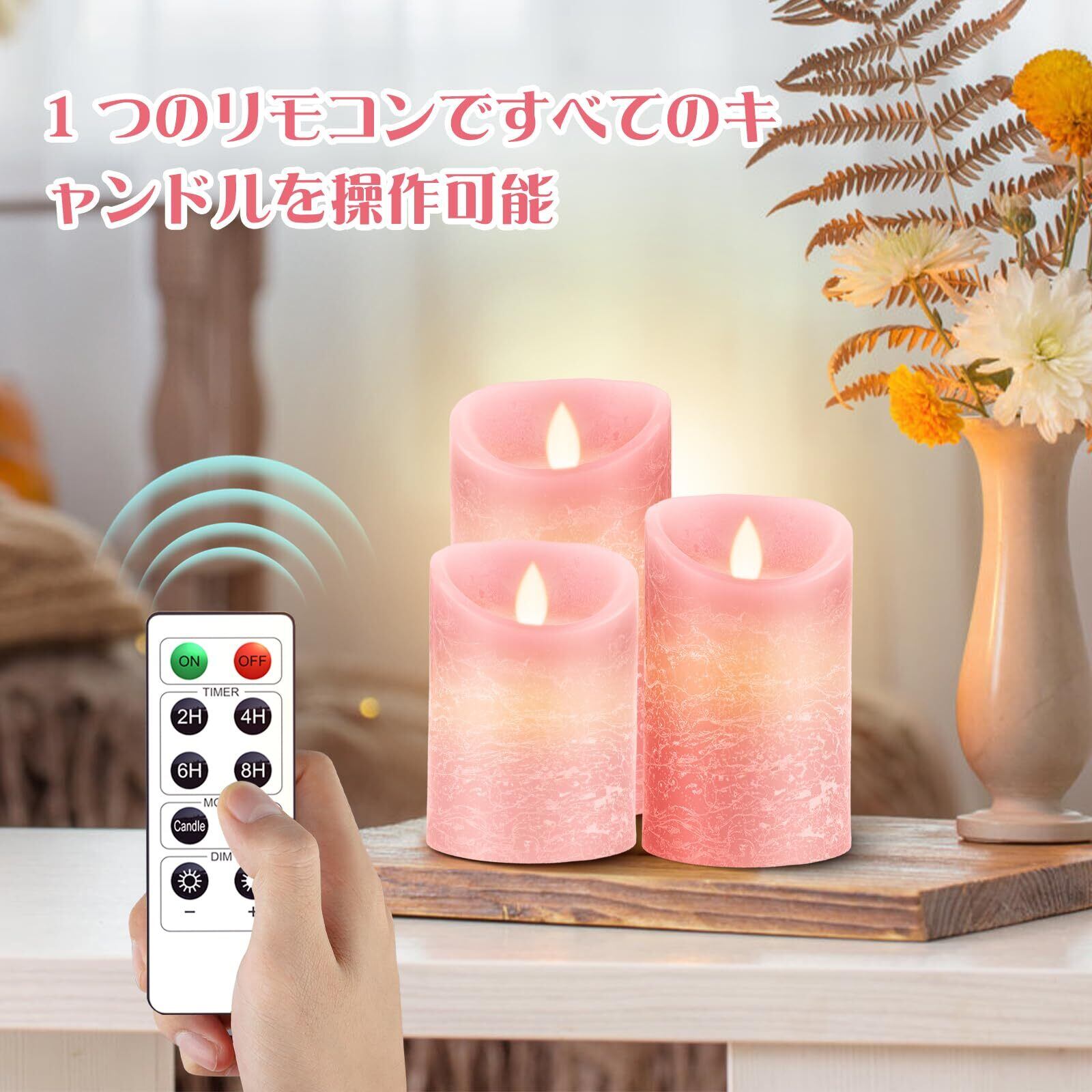 【新着商品】LEDキャンドルライト 3点セット リモコン付き 電池式 揺れる LED キャンドルライト 本物の炎のようにゆらめくLEDキャンドルライト 暖色光 無香料 火を使わない ゆらゆら揺れる 安全 省エネ ロウソク 蝋燭 誕生日 結婚式 パーティ ティーライト 間接照明 寝室 卓上 明るさ調整 LEDライトキャンドル (ピンク)