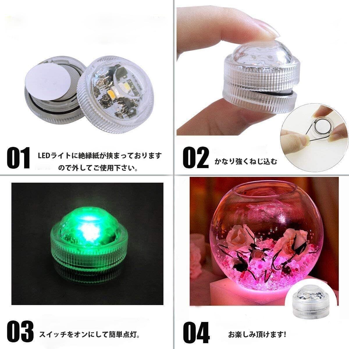 防水タイプ:完全防水タイプのLEDキャンドルなので、直接的に花瓶や水槽の中に長時間置いてもご心配なくお楽しみ頂けます。植物の植え込みや浴室内のディスプレイ等ににうってつけです。