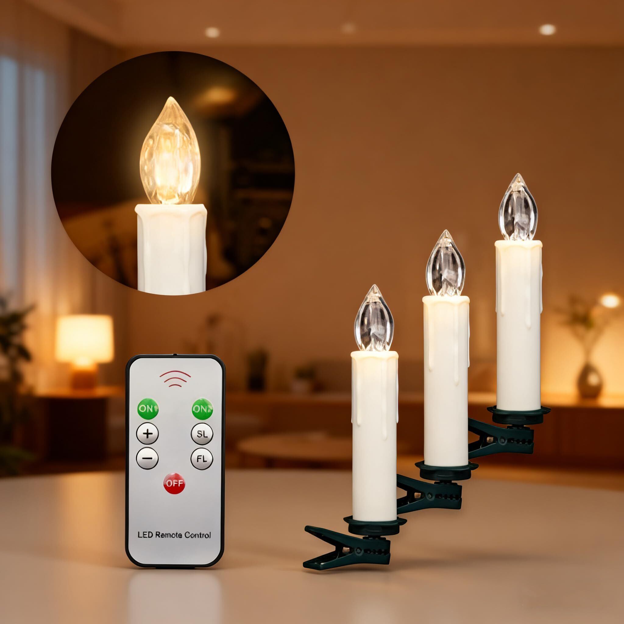 EuroFoneクリスマスツリーLEDキャンドル30個、リモートとリムーバブルクリップ、電池式蝋燭ろうそくledイルミネーション、Flamelessキャンドルライトドリップ効果 ホームデコレーション/結婚式/誕生日パーティー/クリスマス/ハロウィンムード/クリスマスツリー装飾/テーブル/暖炉/ガーデン/に最適、ロマンチックな祝祭装飾ギフト(ウォームホワイト光)