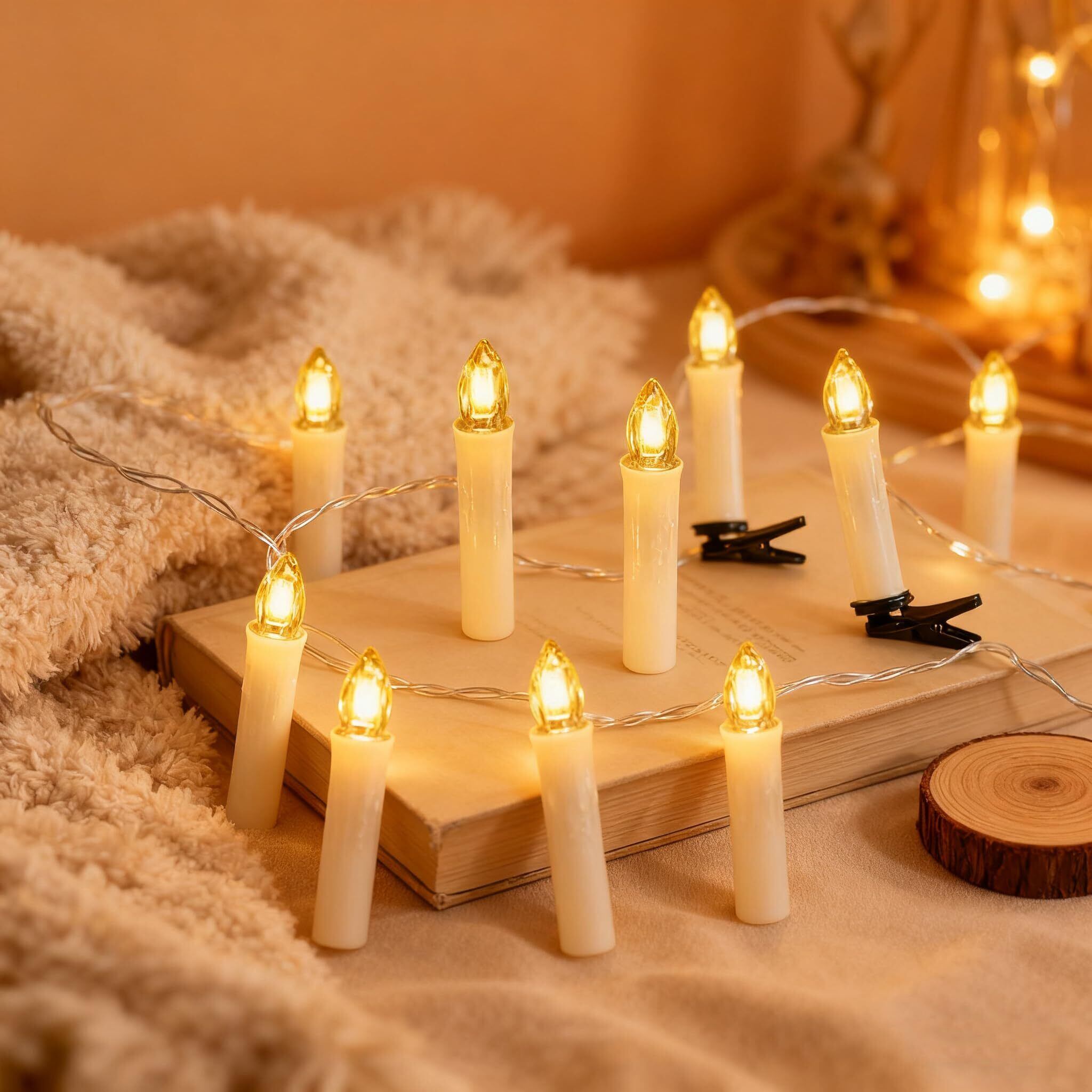 【特別価格】EuroFoneクリスマスツリーLEDキャンドル30個、リモートとリムーバブルクリップ、電池式蝋燭ろうそくledイルミネーション、Flamelessキャンドルライトドリップ効果 ホームデコレーション/結婚式/誕生日パーティー/クリスマス/ハロウィンムード/クリスマスツリー装飾/テーブル/暖炉/ガーデン/に最適、ロマンチックな祝祭装飾ギフト(ウォームホワイト光)