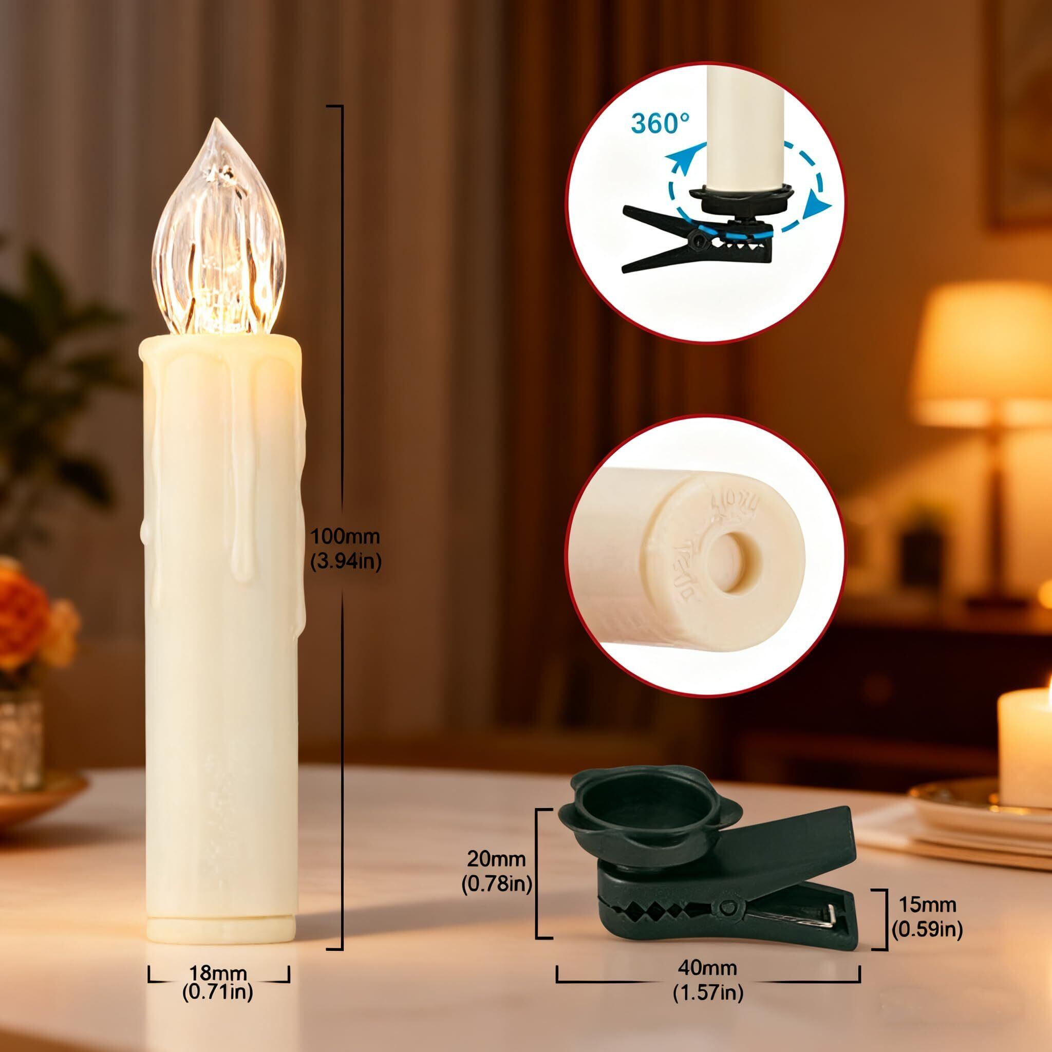 1つの単3形電池(含まれていない)によって動力を与えられる各ろうそく、AA電池は連続して150時間点灯することができます、クリスマスの間に電池を交換しないでください、リラックスし、お祝いの雰囲気を楽しんでください。