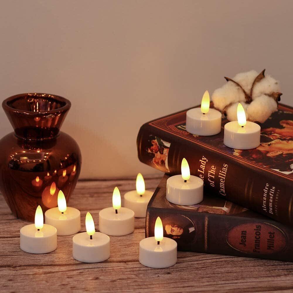 高品質:LEDティーキャンドルの外側のボディは丈夫なプラスチック製です。 本物のちらつきと炎がワックスキャンドルの内側に数インチ置かれているため、リアルな外観になります。