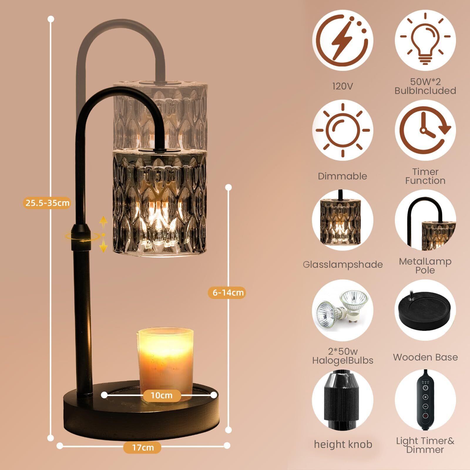 【限定セール】高さ調整可能&タイマー付きキャンドルウォーマーランプ - 4段階調光式ジャーキャンドル用ワックスウォーマー、電球2個付き、上品なホームデコレーションギフト キャンドルウォー 03BL