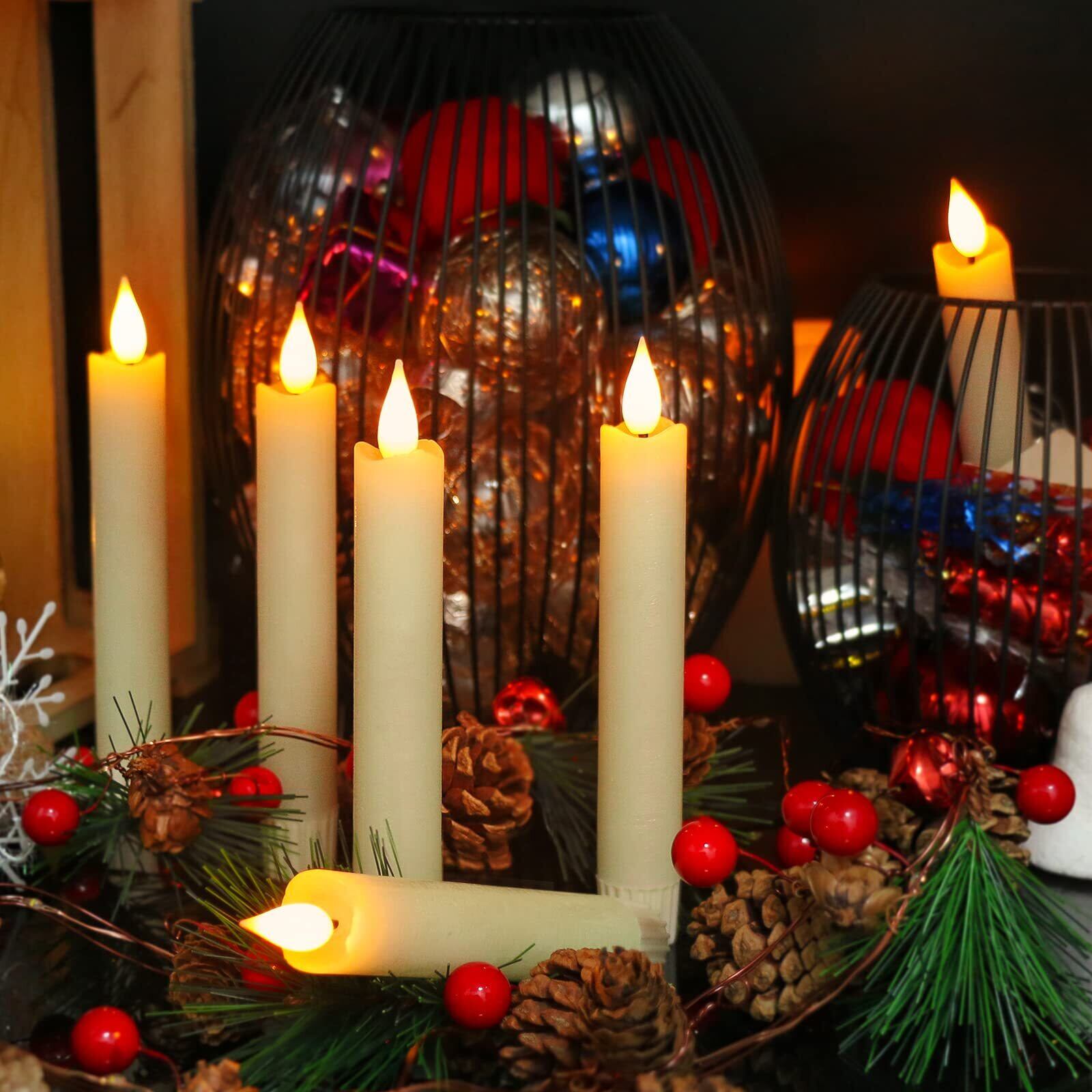 【安全&丈夫】揺らめくLED炎のないテーパーキャンドルは100%安全、ペットや小さなお子様がいる家族に安全です。 このキャンドルは煙を使わず、火災の危険性もなく、火傷も心配もありません。