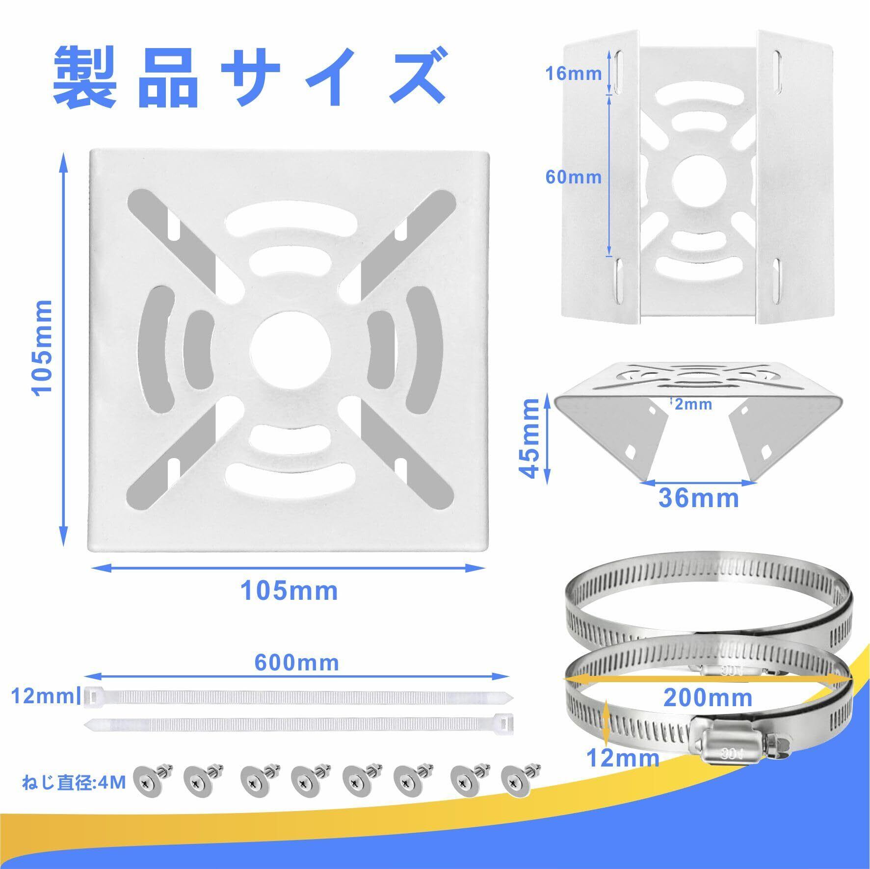 【アップグレード版】ブラケットの主体は最新塗装技術(パウダースプレー)を使い、洗浄、ラッカー、静電気除去処理され、耐光性もよい、スプレー塗装よりも耐久性に優れています。どのタイプのネジ穴にも対応していた。ほとんどの防犯カメラの設置に適しています。付属品はステンレス製なので錆に強く、設置機器の落下を防ぎます。