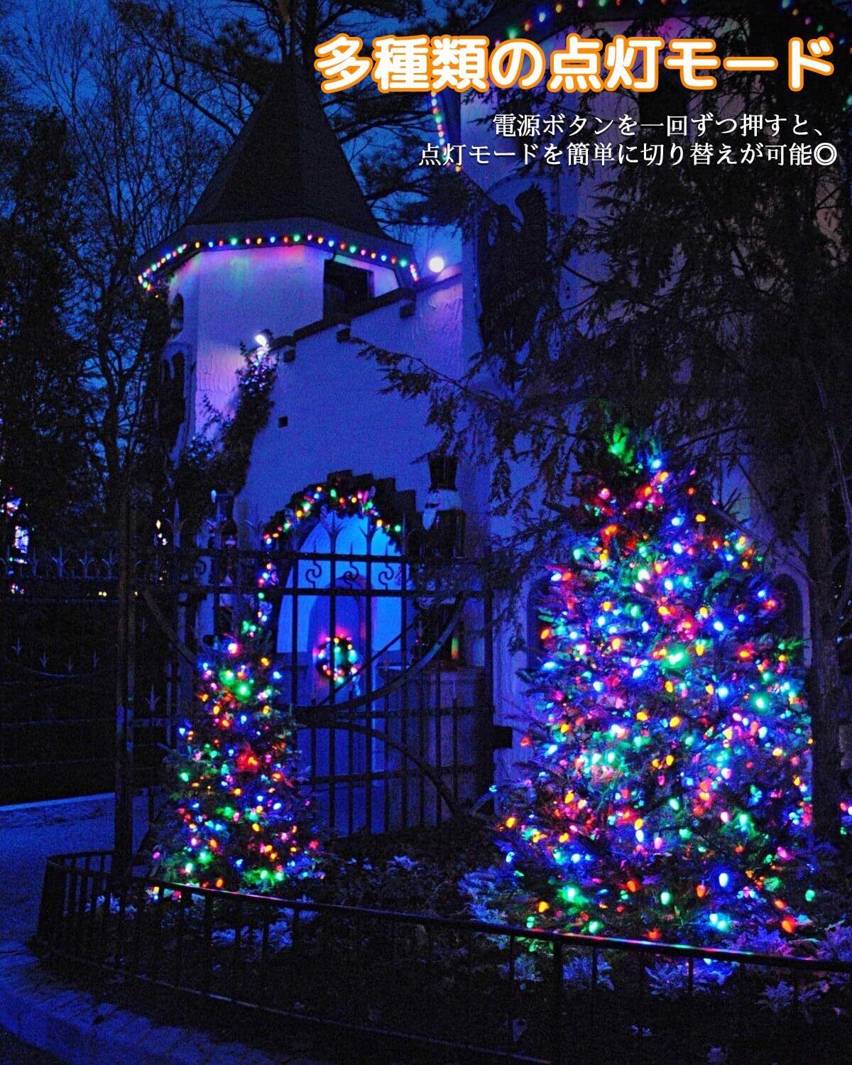 【点灯記憶装置機能で快適】このLEDイルミネーションライトには、便利な点灯記憶装置機能が搭載されています。電源を切っても、前回の点灯パターンを記憶しており、次回点灯時に同じパターンで自動的に光ります。お好みの点灯パターンを簡単に再現でき、毎日の装飾に便利です。クリスマスツリーや庭木、フェンスなどの屋外装飾はもちろん、室内の飾り付けや結婚式、パーティーなどの特別なシーンにも活躍します。さらに、冬だけでなく、年間を通じてガーデンライトとしてもご利用いただけます。