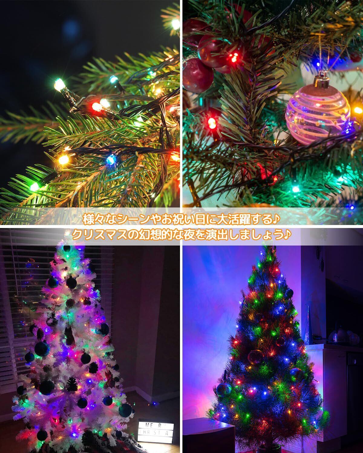 【クリスマスツリー飾り用ライト】このLEDイルミネーションライトは、高品質のLED電球を使用しており、明るさが従来のライトに比べて優れています。各LEDライトが均等に輝き、どの角度から見ても美しい光を放ちます。長さ2mのワイヤーライトが16本あり、合計400球のLEDライトで構成されています。家庭用クリスマスツリー(高さ120cm~210cm程度)に最適で、ツリーをより華やかに演出できます。また、クリスマス以外の季節にも使用可能で、オブジェや家具の装飾にもお使いいただけます。オーナメントやリボンと組み合わせて、様々なシーンに合わせたアレンジが可能です。お部屋を明るく、温かい雰囲気に変えることができます。