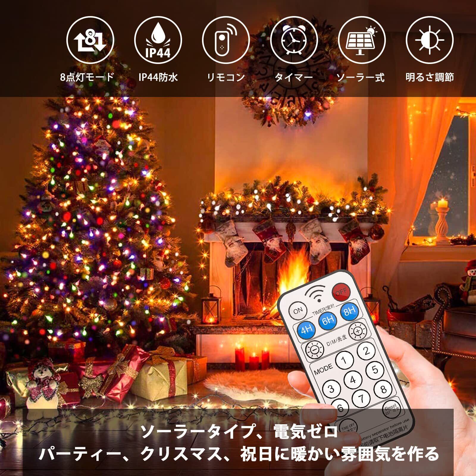 ソーラー LED イルミネーションライト 50m 500球 RJB 屋外 防水 リモコン付き 8モード タイマー機能 メモリー機能 省エネ クリスマス 正月 イベント 装飾 ライト ツリーライト ガーデンライト 庭 店先 業務用