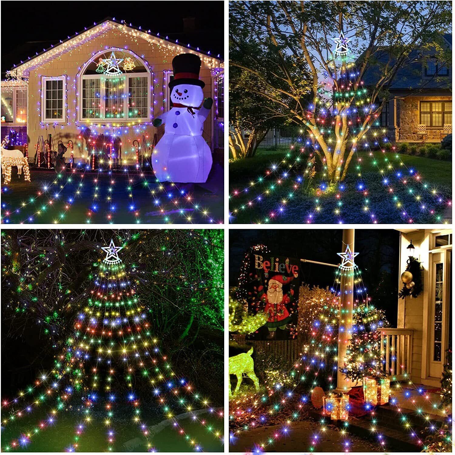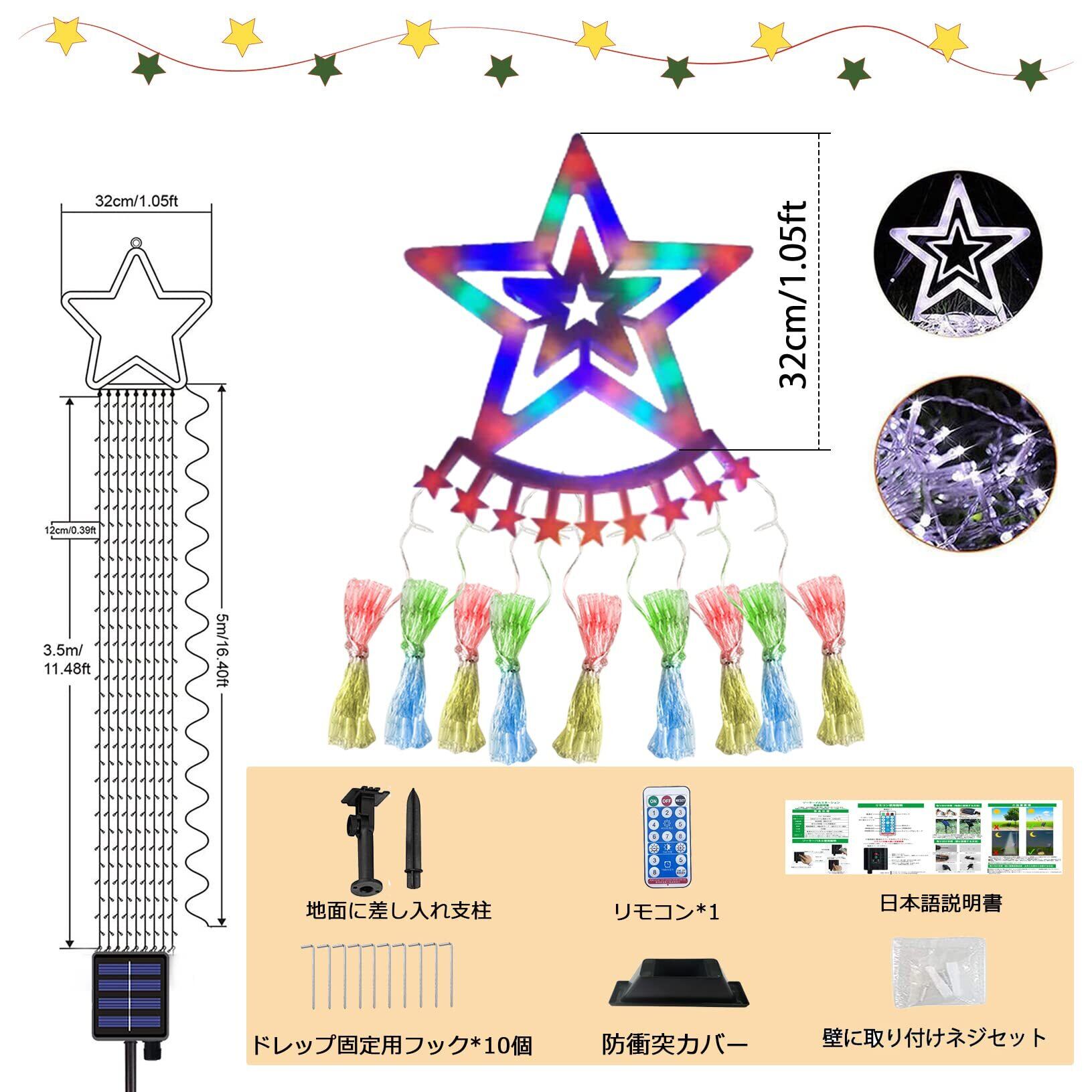 【商品サイズ】長さ:9本*3.5m、電源コードの長さ約5m、重さ:約0.8kg。防水:IP65。高輝度350LED球を採用、想像以上の明るさが見えます。リモコン付属、点灯輝度、タイマー設置できます。全8種類の点灯モードがあります。リモコンで、点灯モードを設定できます。連続変更、波状変更、点滅変更、ちらつき変更、急速変更、低速変更、ドリーム変更、固定点灯という8種類の光るパターンがあるイルミネーションライトです。▶ソーラーライト カラー:赤、青、緑、黄4色ミックス。ひとつひとつのLEDがカラフルに優しく光り輝いて幻想的でロマンチックな空間を演出します。クリスマスやパーテイーの飾り付けに、お部屋や窓辺の間接照明・インテリアとして、テラスやお庭のアクセントやライトアップにぜひ!バレンタインデーやクリスマス、新年、誕生日、家族パーティー、ツリー 飾り付け 庭 ガーデン 芝生 植え込みに飾りつけのイメージに合わせ不雰囲気が作ります。