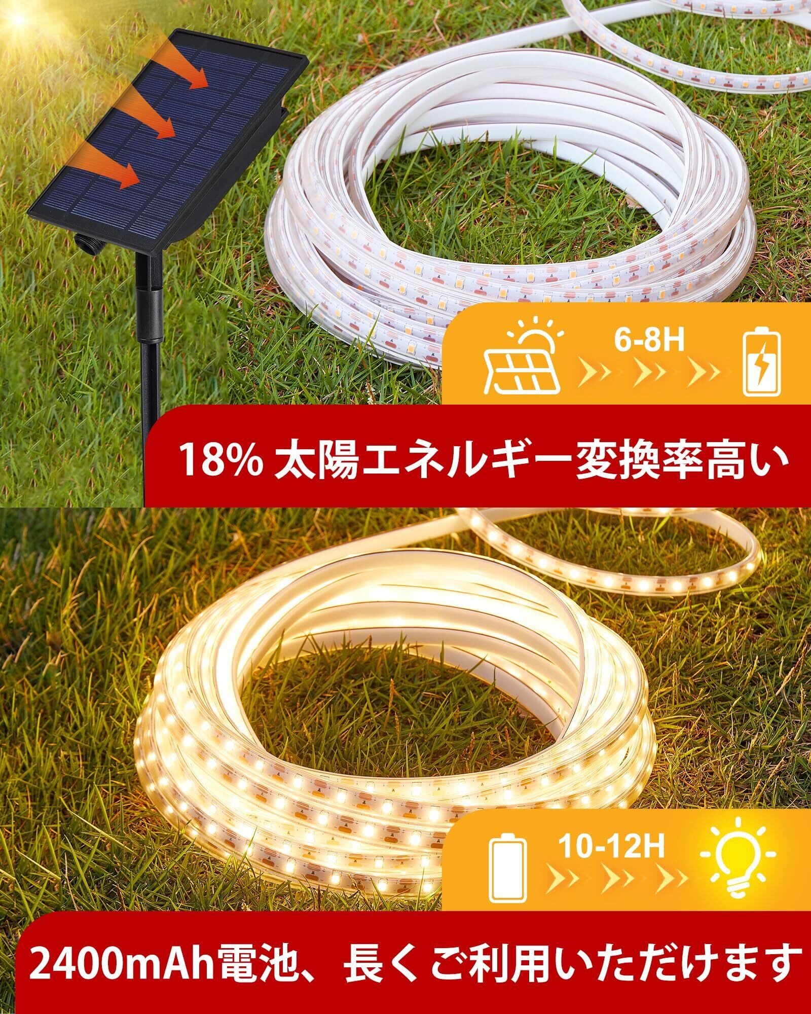 LEDテープライト ソーラー 屋外 8種照明モード 遠隔操作可能 LEDテープライト 防水 3000K テープライト ソーラー 屋外 ソーラー充電とUSB充電 庭園 屋外照明 デッキ ポーチ ベランダ ガーデン パーテ装飾用 (電球色, 10m)