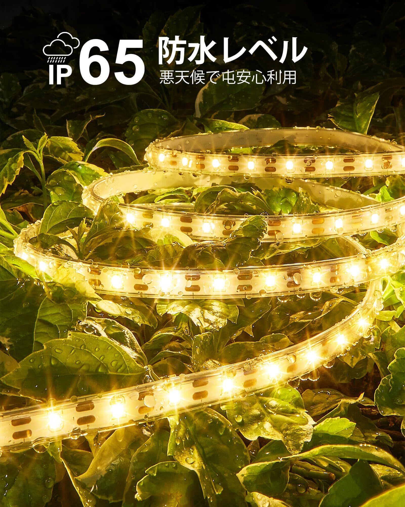IP65 防水:この屋外ソーラーLEDテープライト usbは頑丈なPVC素材で完全に覆われたため、優れた防水性があります;雨、太陽光や雪などあらゆる気象条件に耐えることができます;このLEDライトテープは、屋外での使用に最適な装飾照明器具です;プール、キャンプテント、デッキ、芝生、パーゴラ、裏庭、屋根、ポーチなどに楽しい雰囲気を加えることができます。