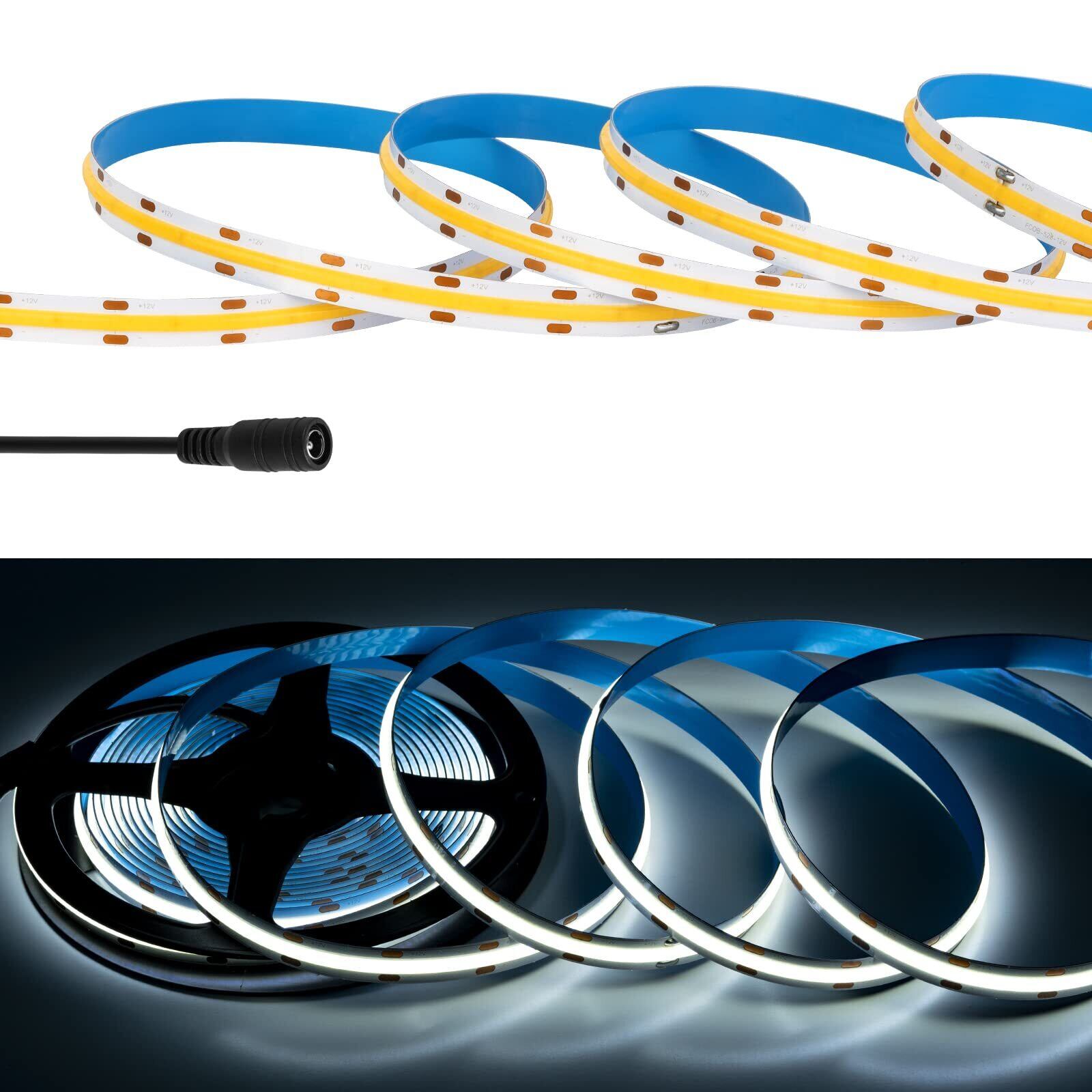【新着商品】BTF-LIGHTING FCOB COB LEDテープライト 高密度 フレキシブル 5M 336LEDs/m 昼光色 6000K 幅8mm ストリップライト APP RFリモコン制御 調光コントローラー DC12V 調光可能 変形可能 切断可能 室内 階段 店舗 看板 天井 棚下照明 装飾用 非防水 FOB CRI>90 DC12Vアダプター付き