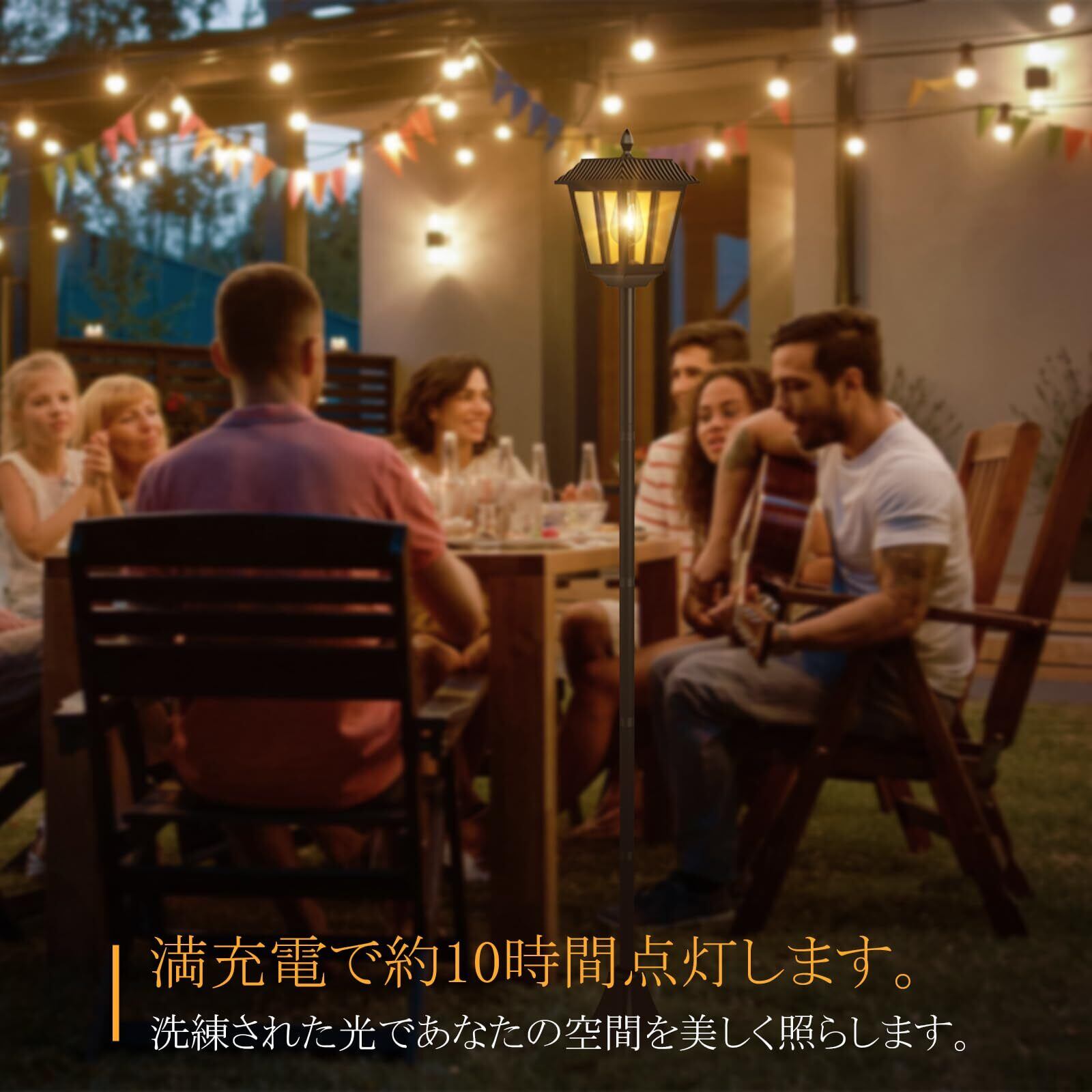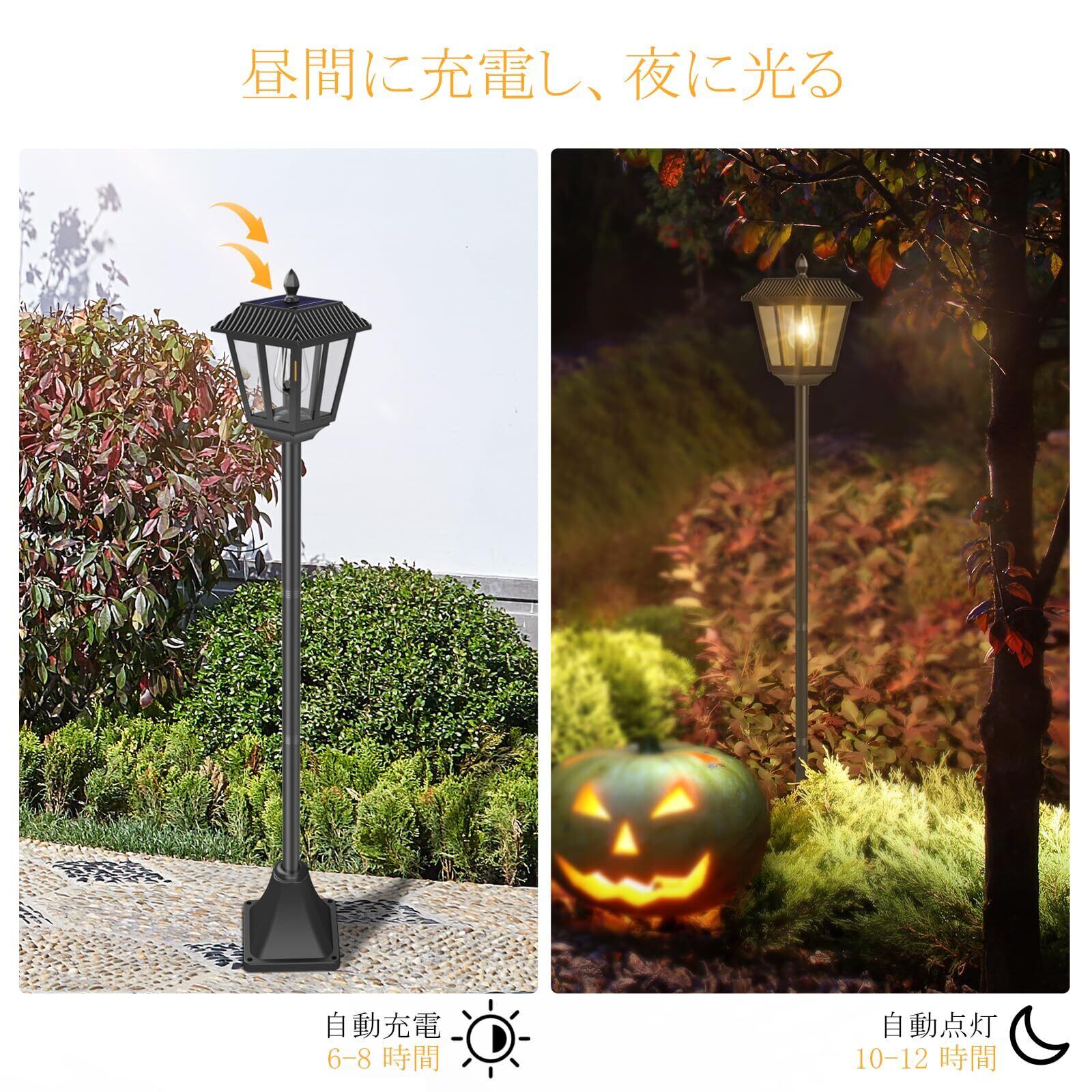 【高速充電&長時間点灯】:高性能ソーラーパネルで6〜8時間の充電後、10〜12時間の連続点灯が可能。暗くなると自動点灯、明るくなると自動消灯。3.2V/1500mAhの大容量バッテリー搭載。1個あたりの重さは約1.35kgで、風にも強く安定性抜群。街灯風の高さと存在感で、庭の照明として実用性とデザイン性を両立しています。