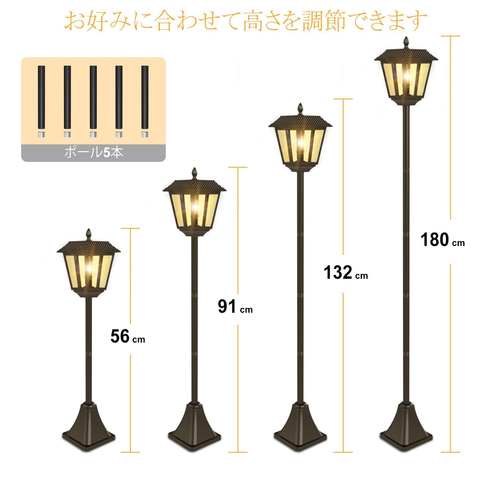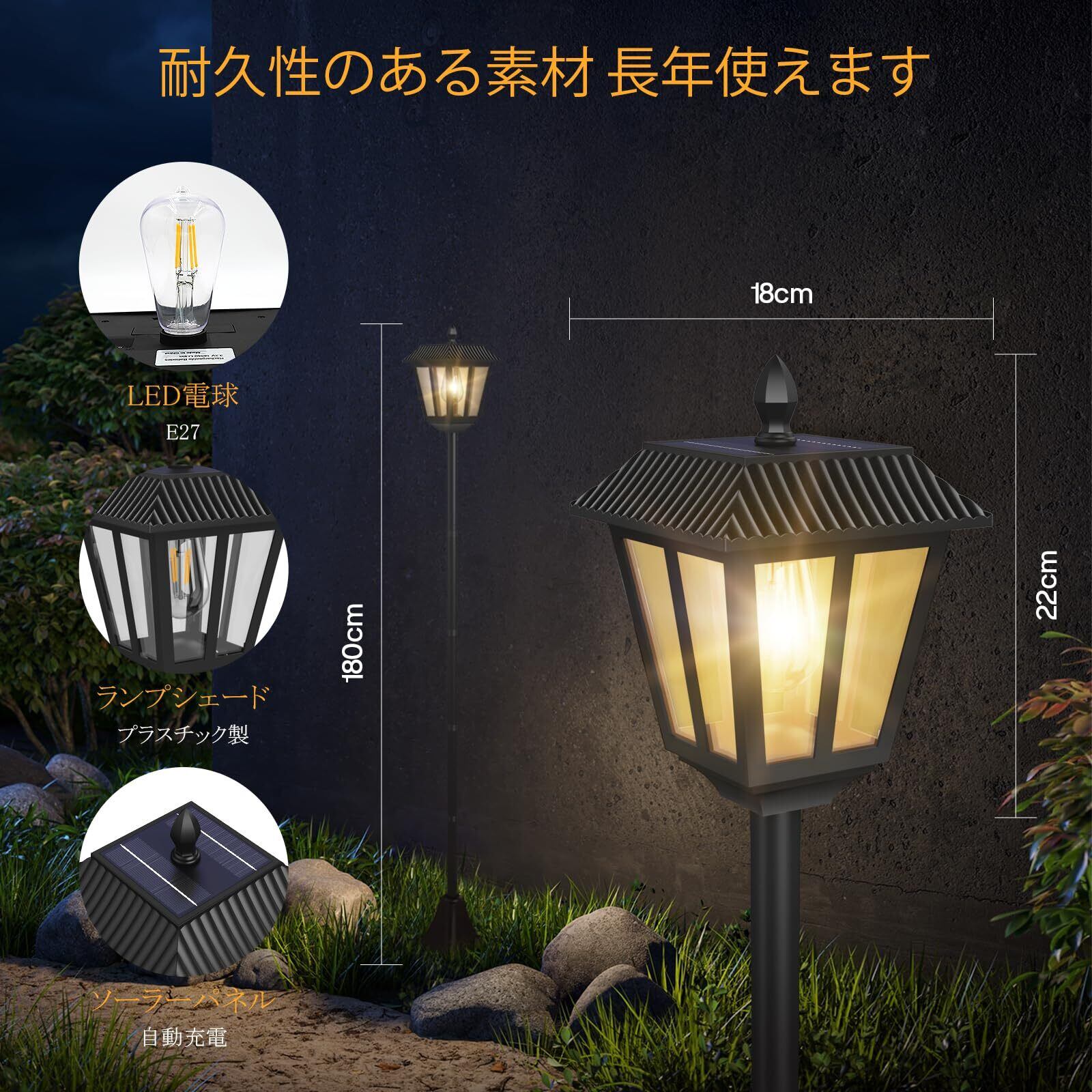 AGOTD ガーデンライト 屋外 ソーラー 埋め込み式 外灯 180cm レトロ おしゃれ ポール 街灯 和風 防水 IP44 太陽光充電 自動点灯 庭 玄関 歩道用 照明 装飾 暖色 1個入り